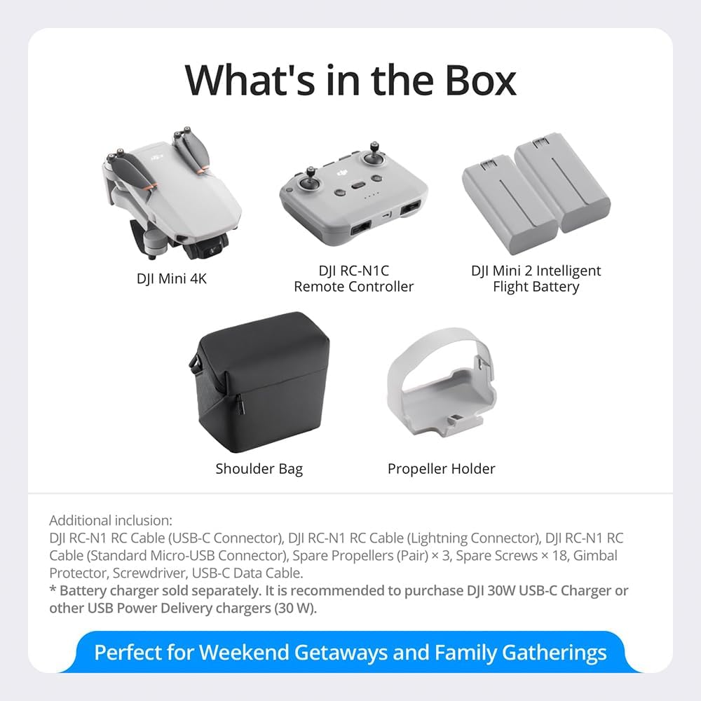 مجموعة كاميرا DJI Mini 4K بدون طيار مع كاميرا للبالغين، أقل من 249 جرام، تثبيت انحراف ثلاثي المحاور، نقل فيديو 10 كم، طيران لمدة 62 دقيقة مع حقيبة وحزمة بطارية إضافية مع ملحقات معدات ديكو