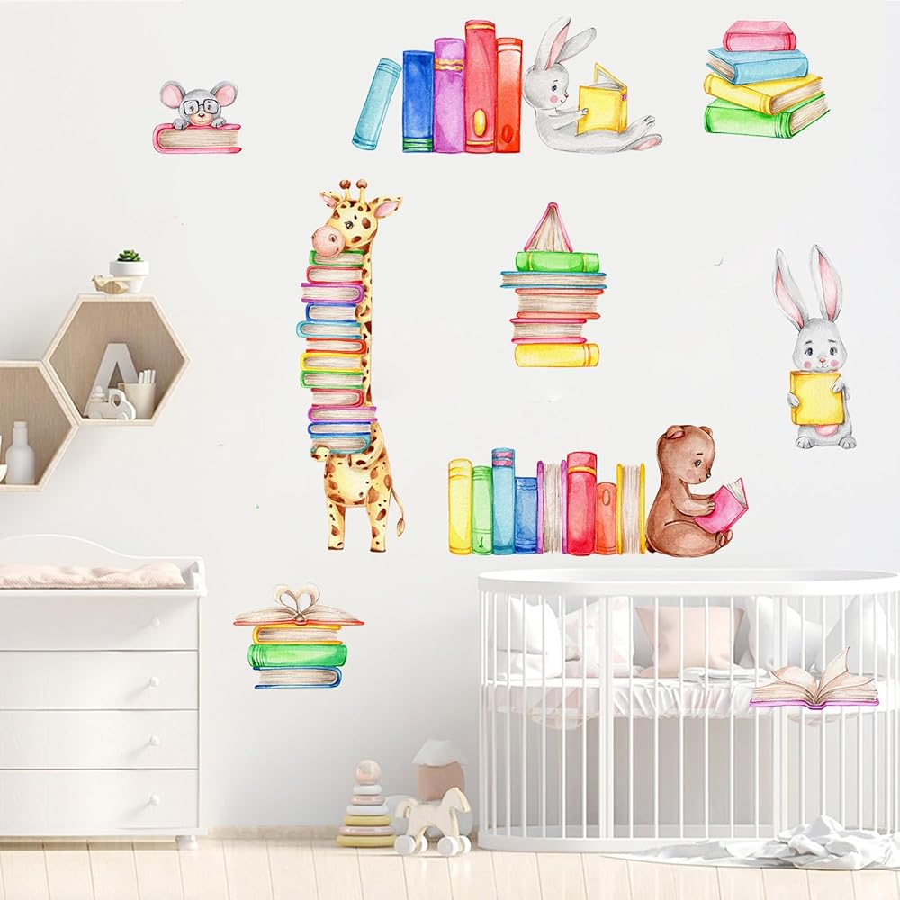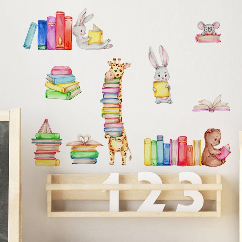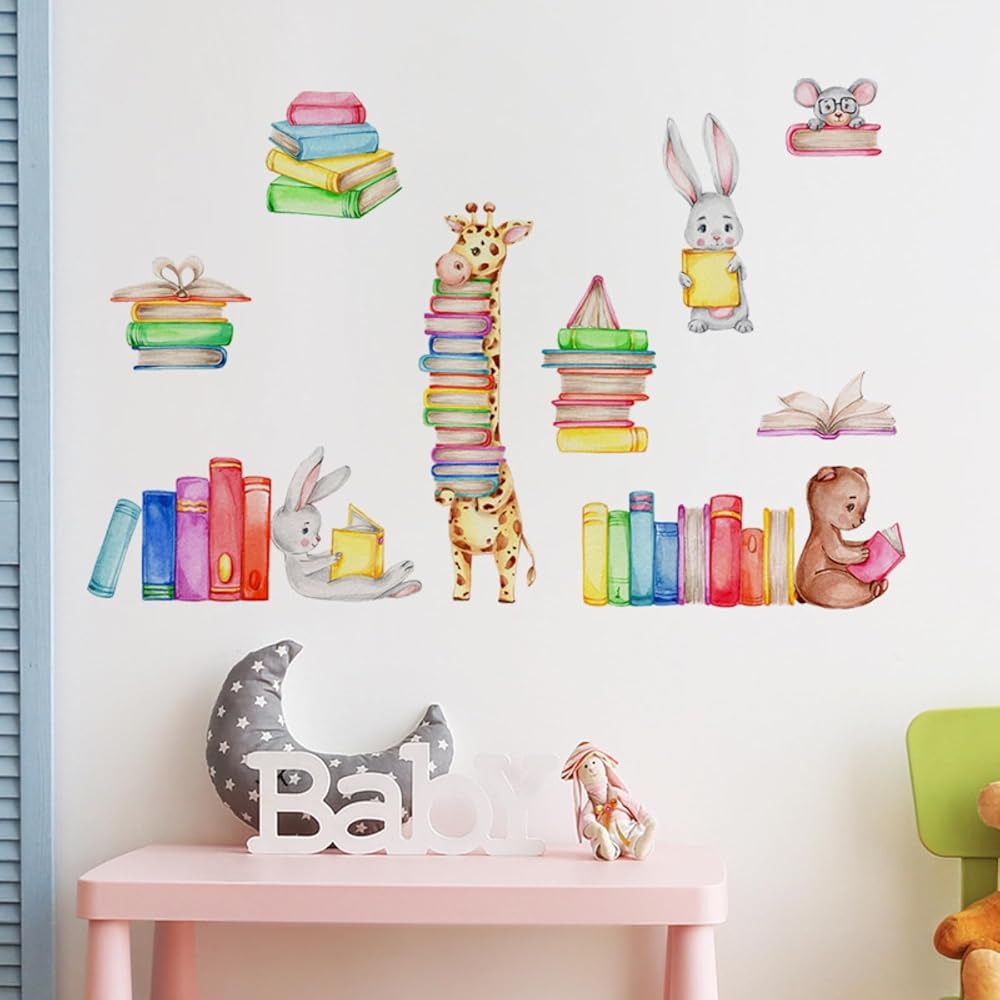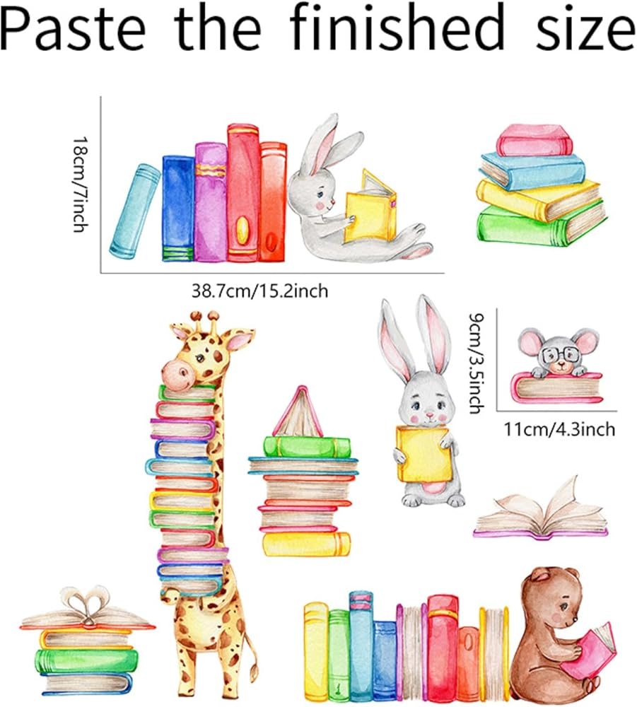 【Adorable Animal Companions】: The charming giraffe and rabbit characters bring an element of playfulness and companionship to your child's space. These wall stickers are not just decor; they are friendly animal buddies encouraging a love for books.