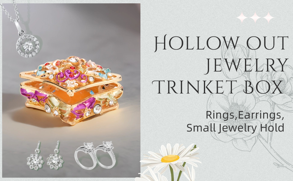 - Designs:trinket boxes is using hollow-carved design,opens hingle to reveal storage compartment,you can put rings,earrings,small jewelry.