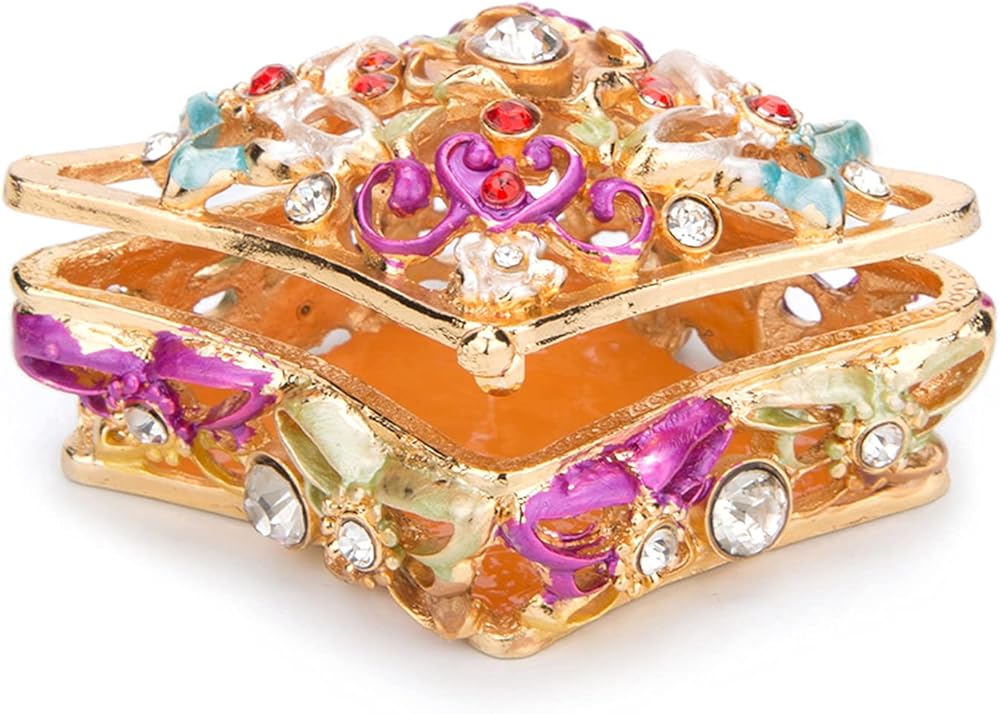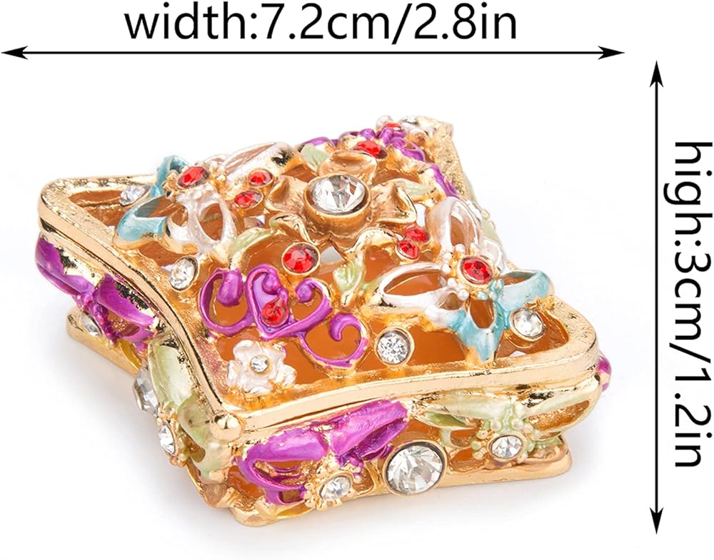 - Material: Trinket boxes is made of zinc alloy,colorful enamel, high quality rhinestones and pearl .it is good for decoration and collection.