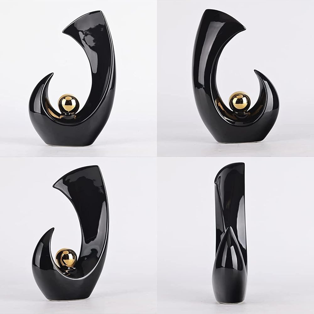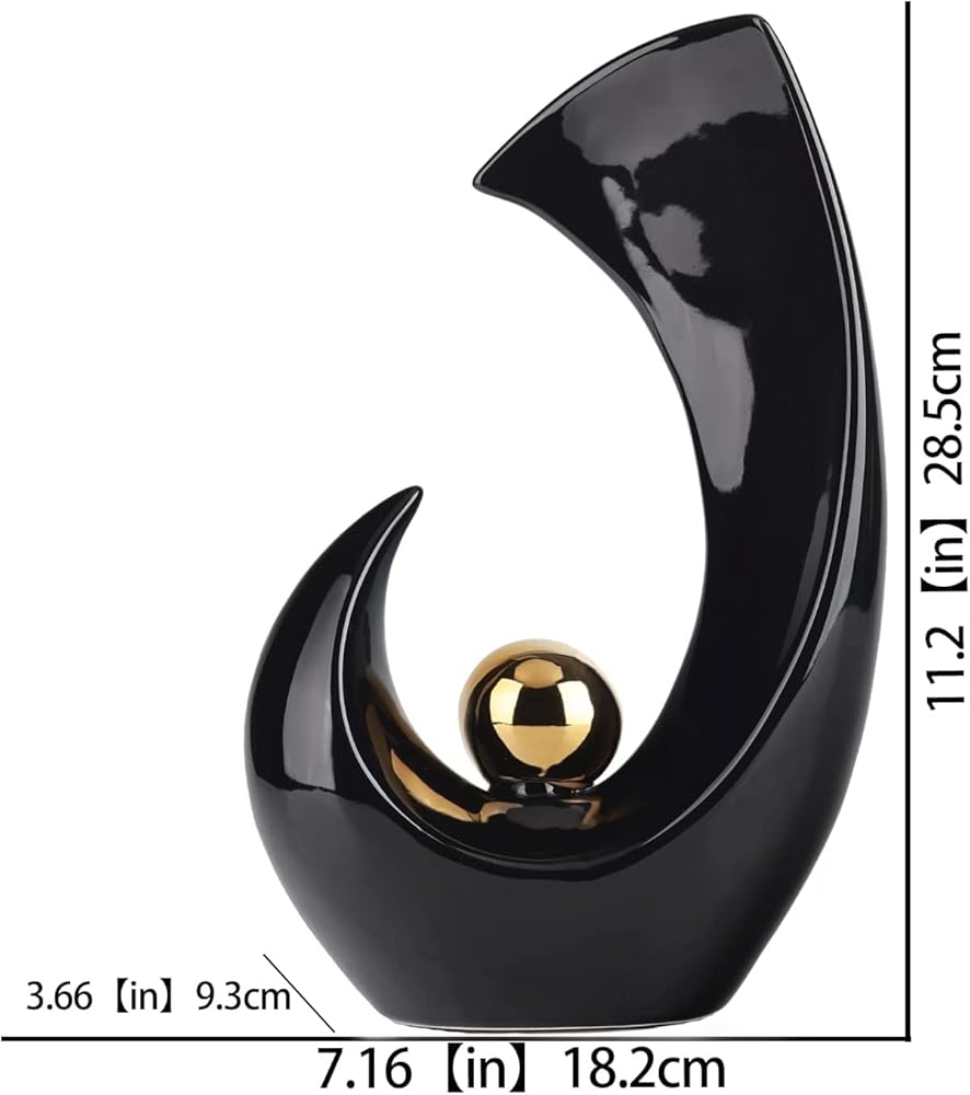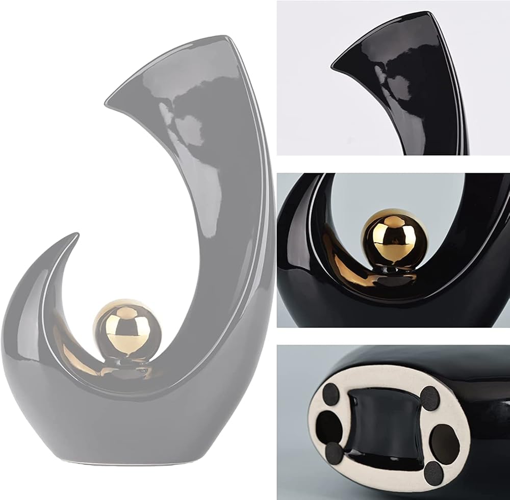 تصميم التمثال: تمثال تجريدي عصري من السيراميك، تصميم أنيق الشكل، لوحة كلاسيكية بلونين مع الذهب في المنتصف لجعل التمثال أكثر جاذبية، ضعه في أي مكان تريده فهو لمسة ديكور منزلي مثالية.