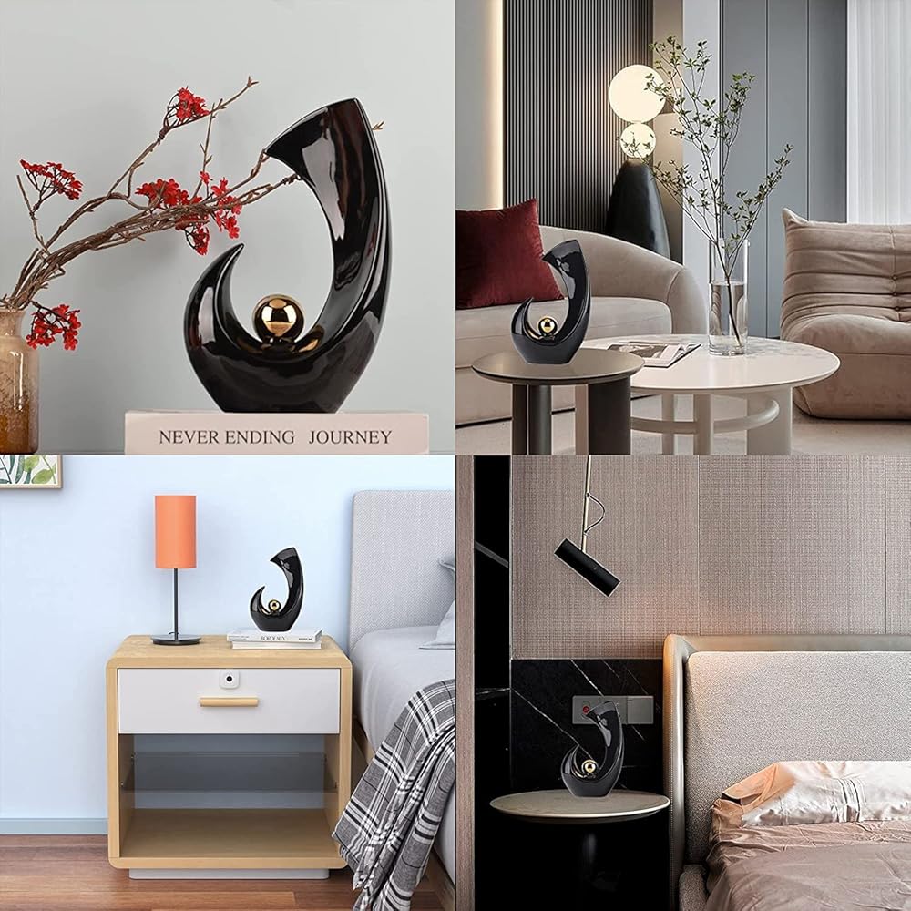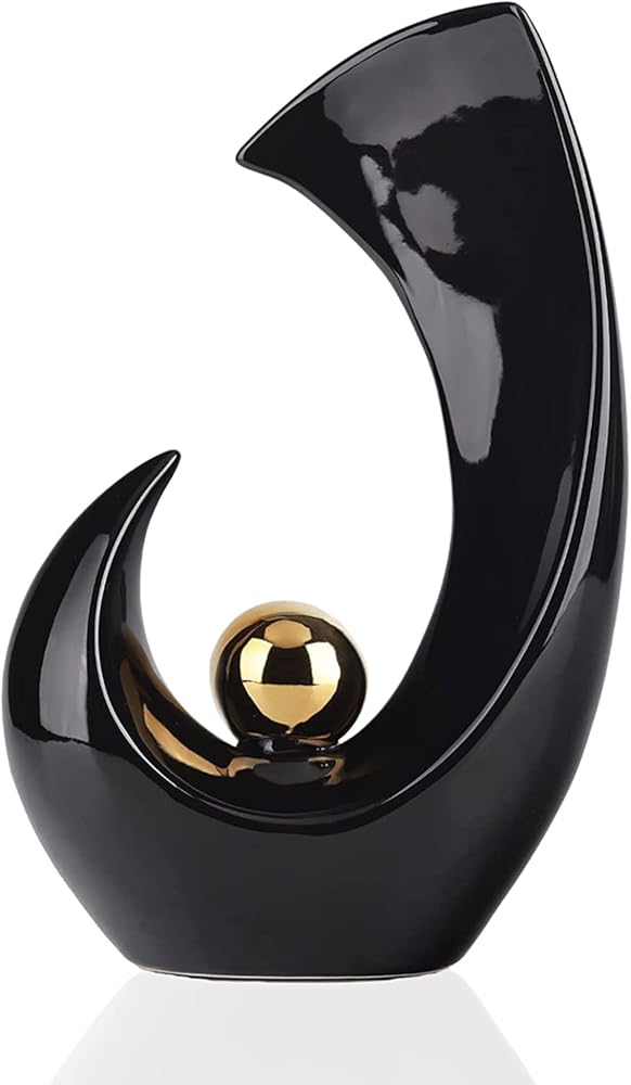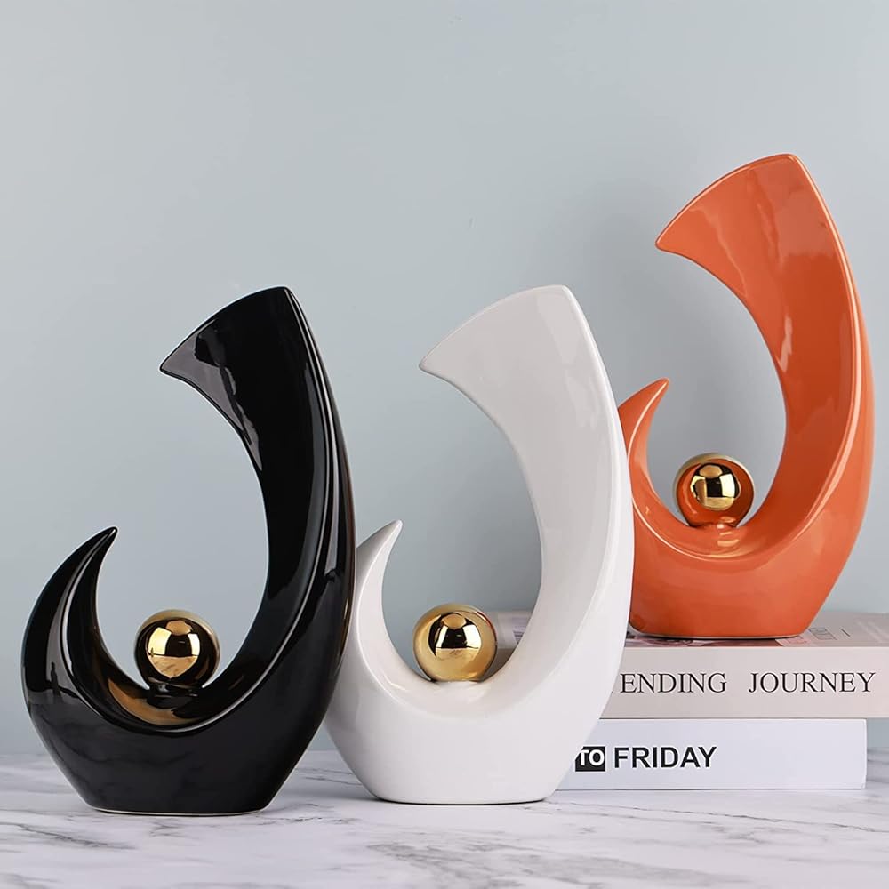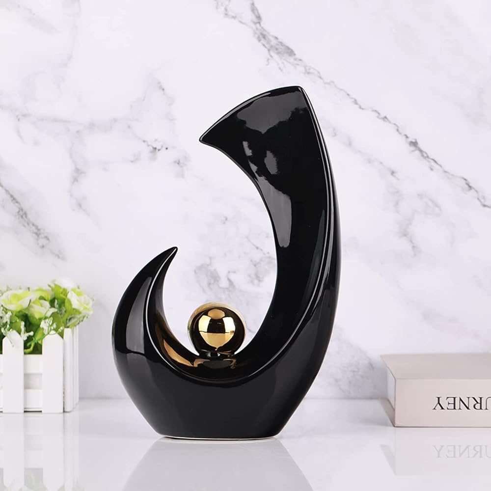 تصميم التمثال: تمثال تجريدي عصري من السيراميك، تصميم أنيق الشكل، لوحة كلاسيكية بلونين مع الذهب في المنتصف لجعل التمثال أكثر جاذبية، ضعه في أي مكان تريده فهو لمسة ديكور منزلي مثالية.