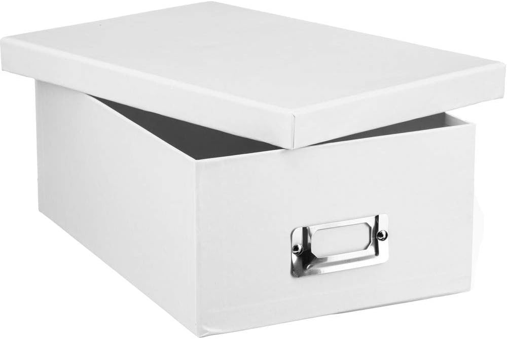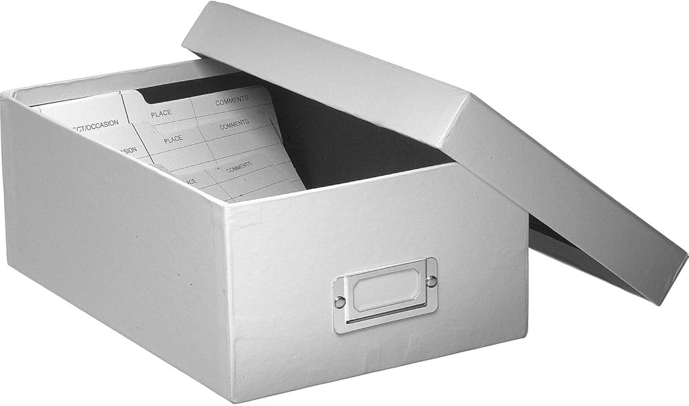 photo albums: The Heavy Duty Photo & Video Box stores and protects approximately 1100 photos up-to 4"x6"/4"x7". Other features include Holds Advanced Photo System prints up to 4" x 7" photo negative index prints and ten VHS videos Durable index-type file cards and I.D. holder included Also ideal for storing negatives postcards greeting cards recipes wedding keepsakes baby memories trading cards collectibles sewing notions CD's checks and receipts Interior Dimensions (L x W x H) 7.50 x 11.00 x 4.50" Exterior Dimensions 11.0 x 7.50 x 4.50" Archval quality Photo safe and Acid-Free Produced by Pioneer(r). 744790348521 - B1/C-White-2