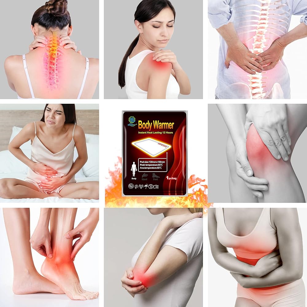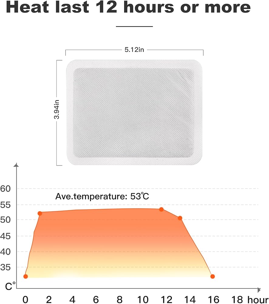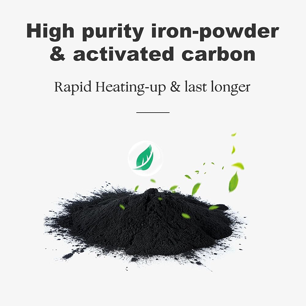 Heating Instantly, Holds Heat 12-18 Hours: KONGDY heat patches for pain relief contain high-purity iron powder and activated carbon, they don't take a long time to heat up and stay heated for quite a while.
