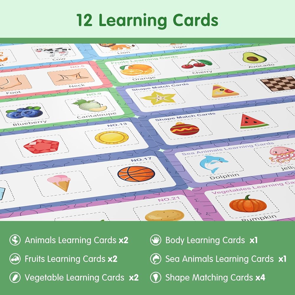 • 🧡【Fun Flash Cards】 The upgraded BESFAN sorter toys provide 12 exquisite double-sided learning cards, with fun, colorful images, children will be introduced to common things in life, including body parts, shapes, fruits, vegetables, animals, and sea animals. It's a great educational toy for parents at home, and kindergarten or daycare preschool learning activities.