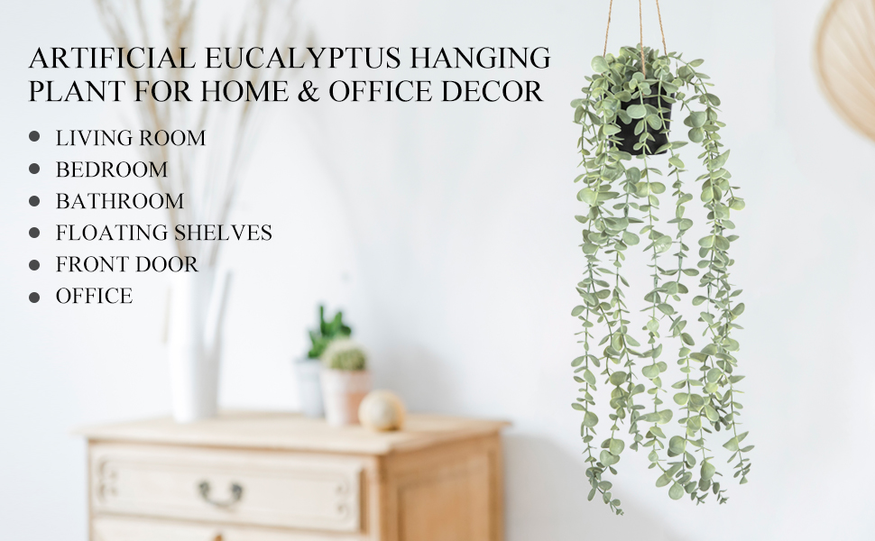 【يجلب أي غرفة إلى الحياة】يعمل هذا النبات الاصطناعي المعلق كمكمل مثالي لأنماط الديكور المتنوعة والأجواء الطبيعية لإضفاء إشراقة على مساحتك. مع اللون الواقعي والمظهر الأصيل، فإن نبات الأوكالبتوس المزيف هذا مثالي لتزيين غرفة المعيشة وغرفة النوم والمطبخ والأرفف العائمة وأرفف الكتب.