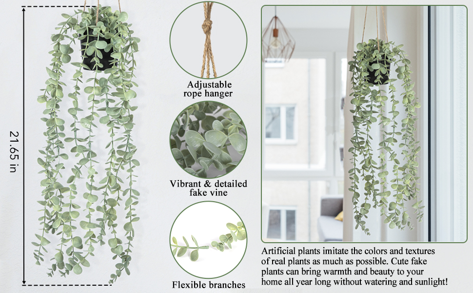 【سهلة الصيانة】النباتات المعلقة الاصطناعية لديكور المنزل في الأماكن المغلقة متينة للغاية، ولا تحتاج إلى سقيها وهي منخفضة الصيانة، مما يجعلها خيارًا ممتازًا لتزيين المشاهد الداخلية والخارجية على المدى الطويل.