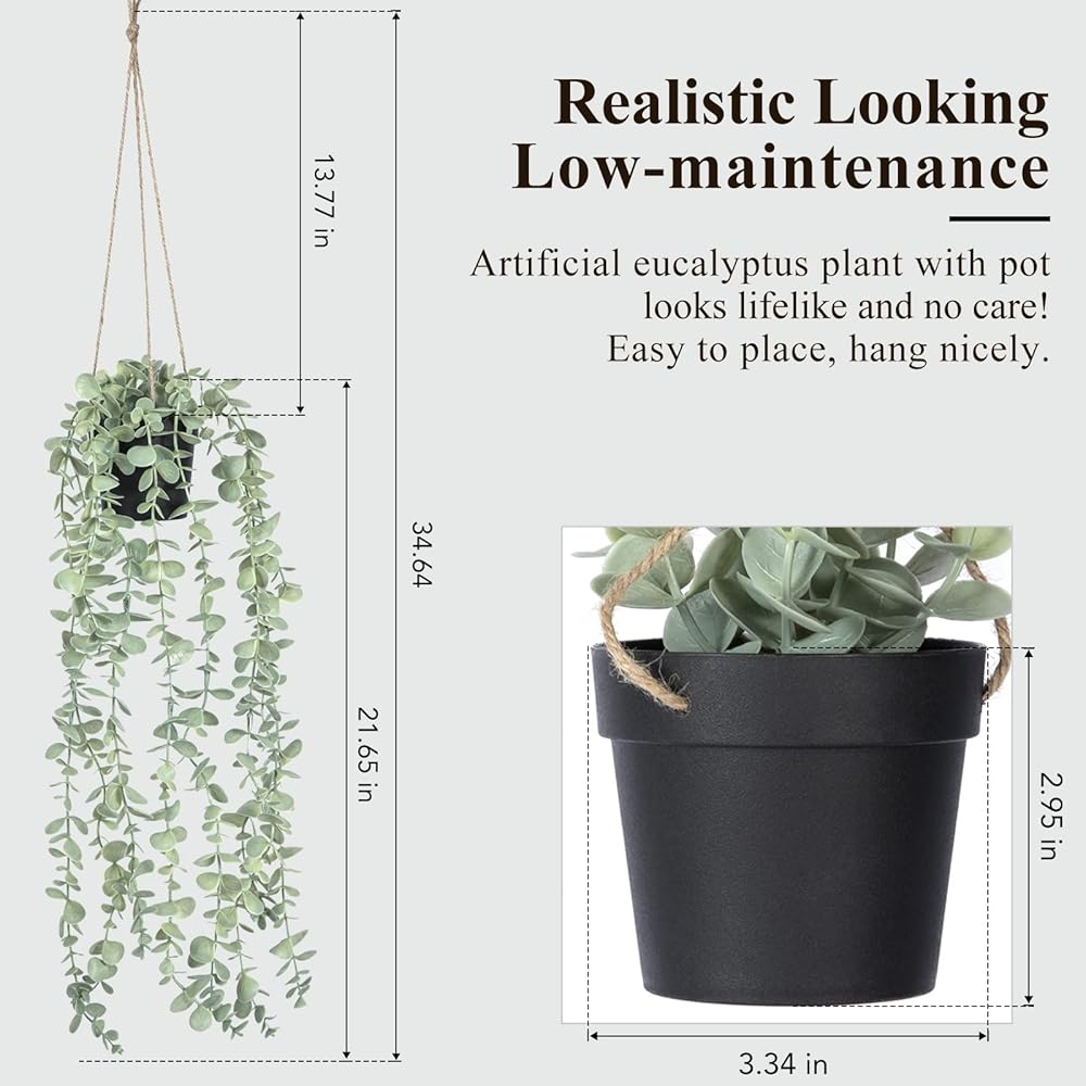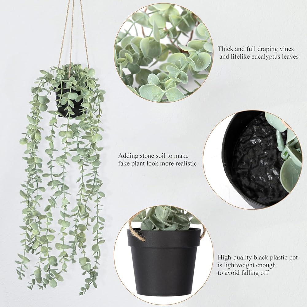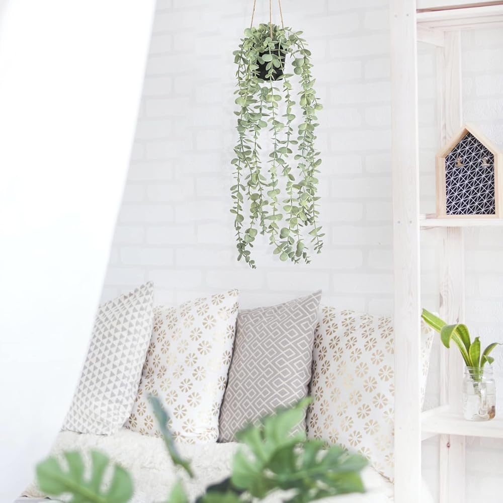 【واقعي وعالي الجودة】 يحاكي الديكور الاصطناعي للنباتات المعلقة نبات الأوكالبتوس الحقيقي قدر الإمكان في جميع الجوانب مثل اللون والملمس، مع أوراق سميكة وممتلئة لخلق إحساس حقيقي جدًا بنمو النبات. نباتات صناعية عالية الجودة وطويلة الأمد تجلب الخضرة إلى منزلك.