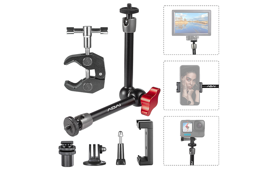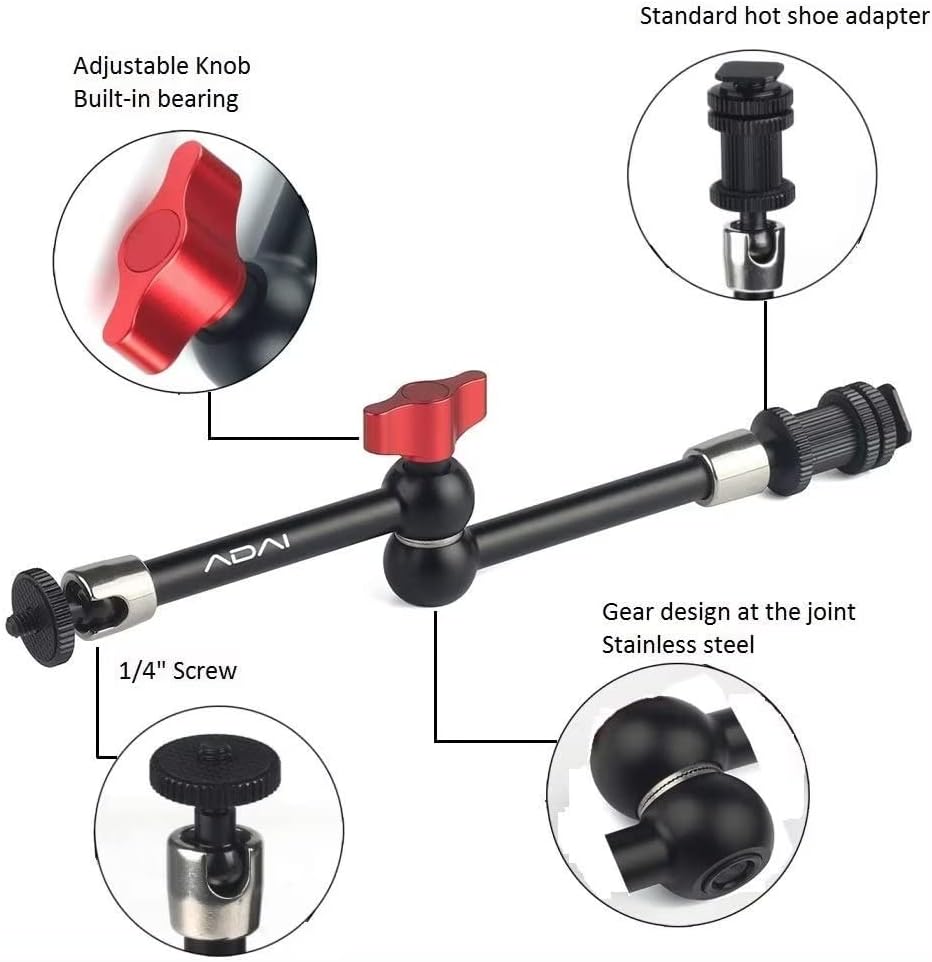 دوران 360 درجة: مع رأس دوار 360 درجة في نهاية الذراع السحري مقاس 11 بوصة يجعلك استخدامًا مريحًا عندما تحتاج إلى أي زاوية للجهاز.