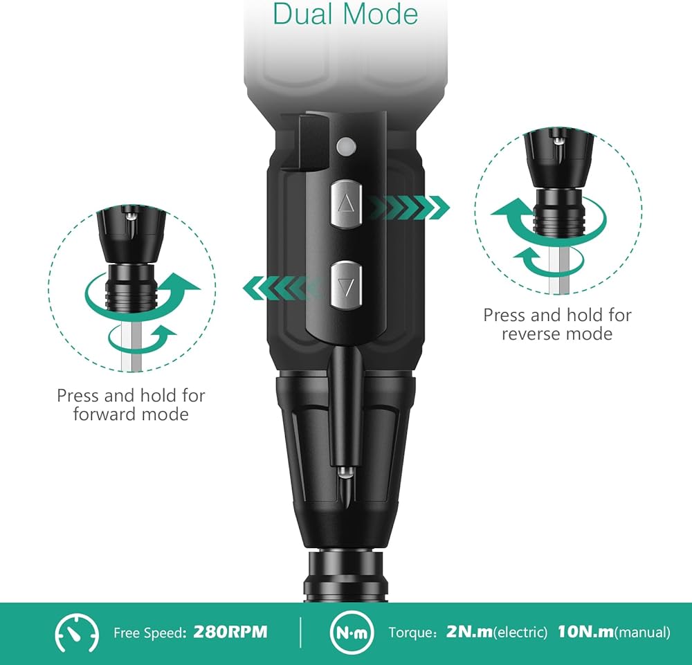 【كهربائي ويدوي 2 في 1】سرعة التباطؤ لمفك البراغي الكهربائي اللاسلكي هي 280 دورة في الدقيقة، والحد الأقصى لعزم الدوران في الوضع الكهربائي هو 2 نيوتن متر، والحد الأقصى لعزم الدوران في الوضع اليدوي هو 10 نيوتن متر. إنه رائع للغاية في مجموعة مفك البراغي الكهربائية الصغيرة.