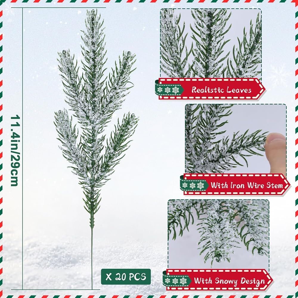 【كمية كافية】ستحصل على إجمالي 20 قطعة من فروع أوراق الصنوبر الاصطناعية للكريسماس. طول 11.4 انش/ 29 سم، كمية كافية وحجم مناسب لتلبية احتياجاتك الزخرفية المتنوعة، يمكنك اختيار الكمية المناسبة لتتناسب مع الديكور الخاص بك
