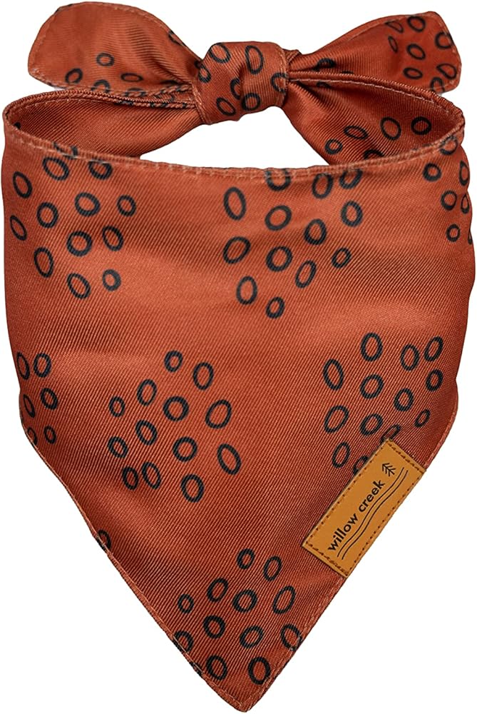 • ADJUSTABLE SIZING AND COMFORT: Willow Creek Bandanas come in three standard sizes: Small (necks up to 14”), Large (necks up to 21”), and X-large (necks up to 31”). The long ties allow for an adjustable fit to a variety of neck sizes and tie into an attractive knot. The curve-cut neckline is designed to fall around the natural neckline of your pet keeping them comfortable without excess or bunched up fabric.
