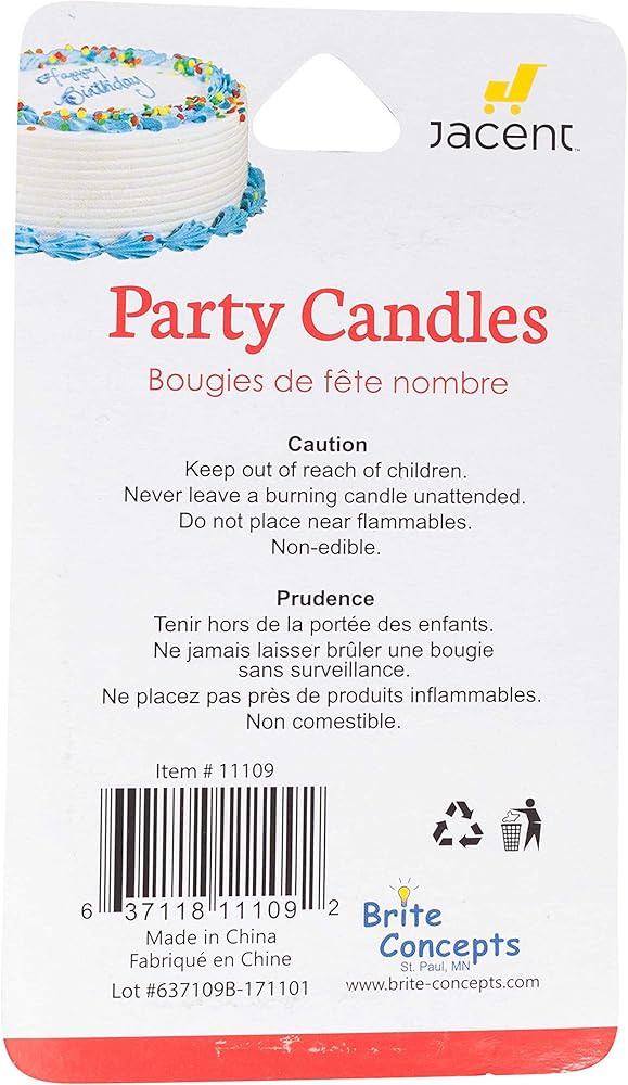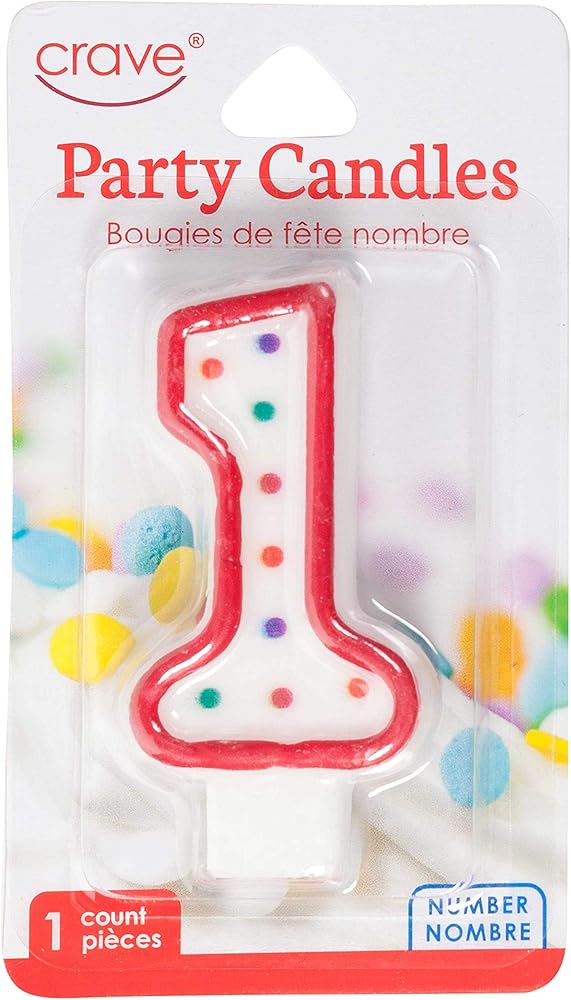 • الأبعاد: كل شمعة مرقمة بقياسها 7.62 × 3.81 × 12.7 سم، ولها طرف شمع في الأسفل لإدخاله في الكعكة.