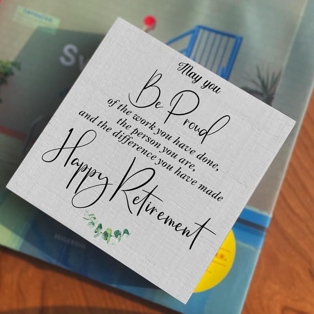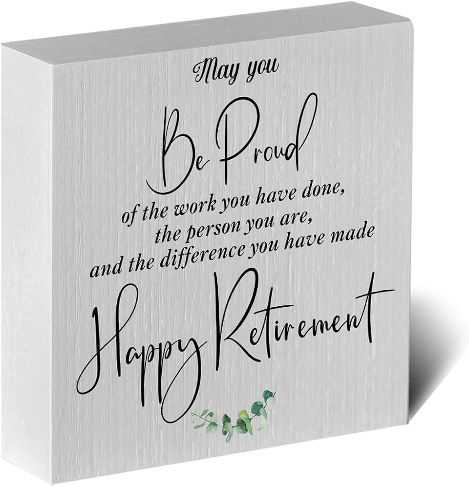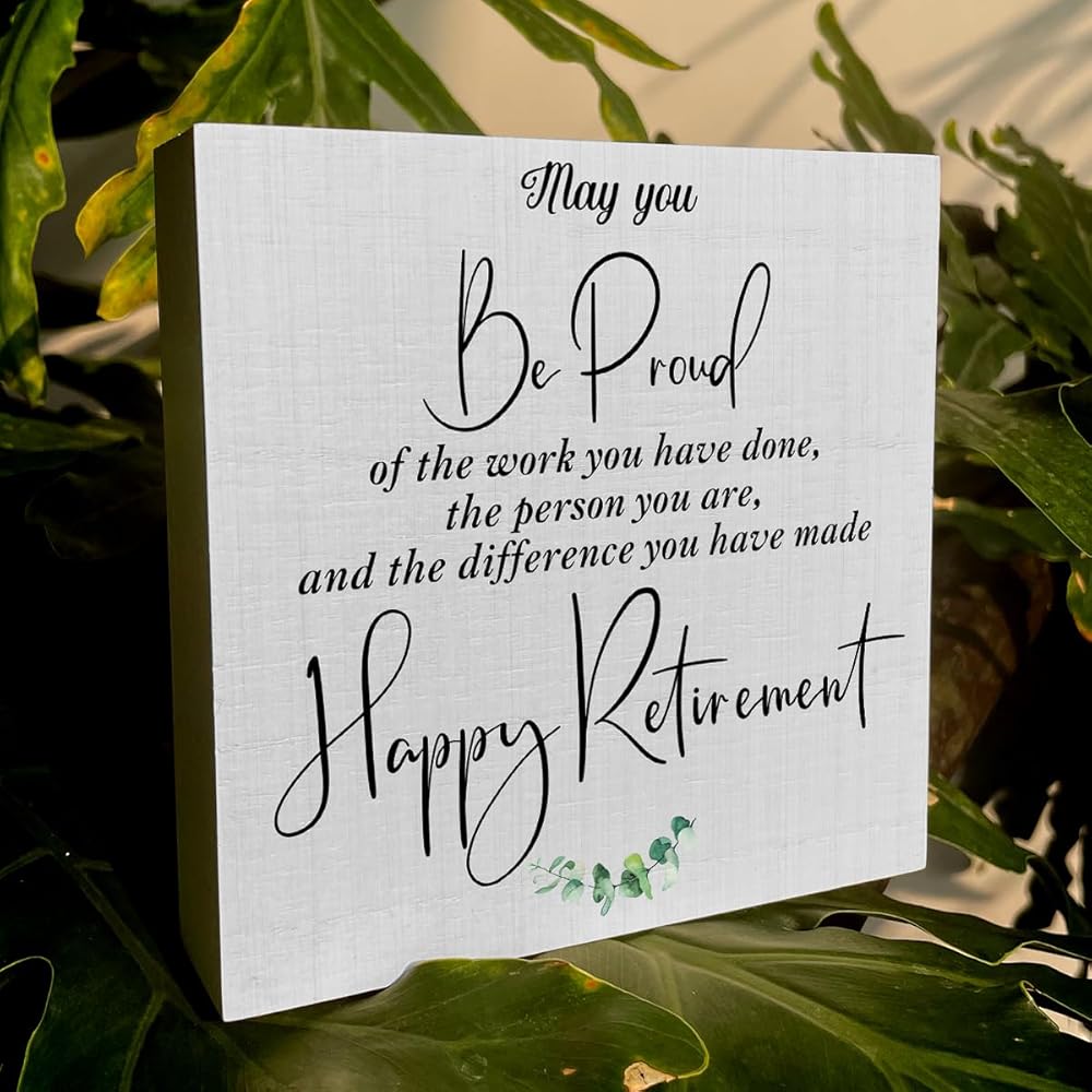 ENGVZ Country Retirement Artwork Wood Box Sign Rustic Farmhouse Style May You Be Proud of the Work Wood Block Plaque 5 X 5 Inches Home Office Desk Sign Decor for Presents