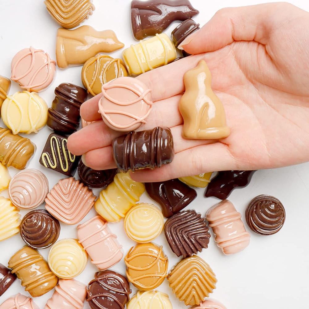 • هناك إجمالي 50 قطعة شوكولاتة مقلدة، أكثر من 20 نمطًا مختلفًا وألوان ومقاسات مختلفة من عبوات الشوكولاتة المختلطة، تسليم عشوائي، كمية كافية للديكور الذي تصنعه بنفسك