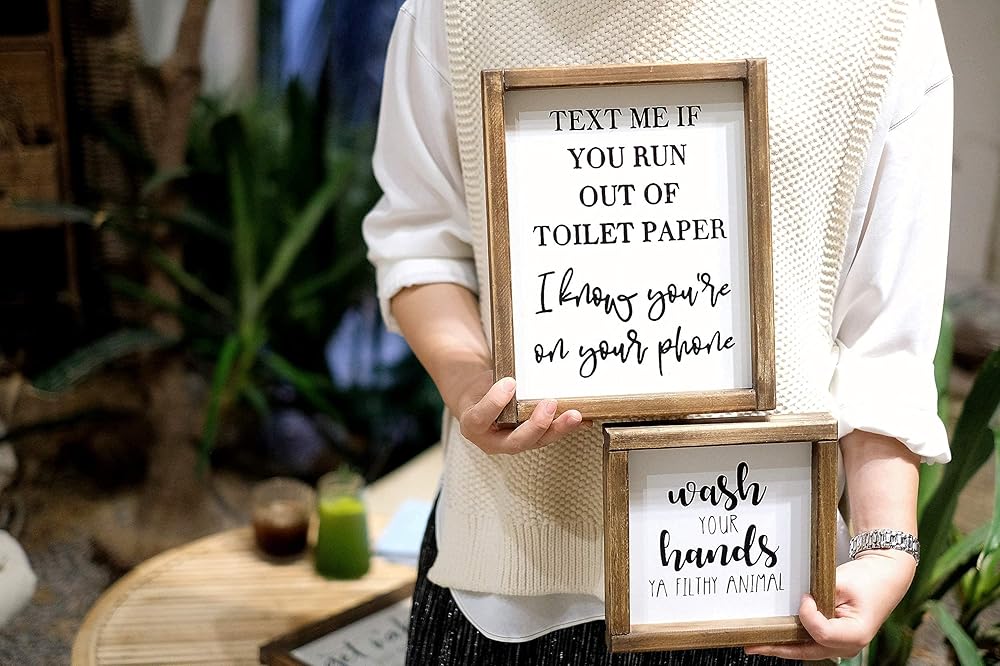 أضف سحر مزرعة فورية إلى حمامك مع هذه اللافتة الخشبية اللطيفة والمضحكة~