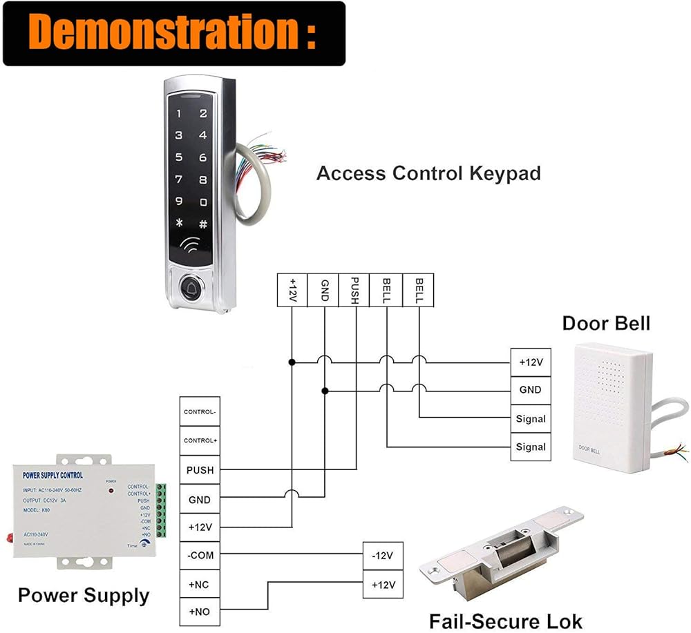 جرس باب مدمج وقارئ بطاقات 125 كيلو هرتز؛ هيكل قوي من سبائك الزنك مطلي بالكهرباء مضاد للتخريب.