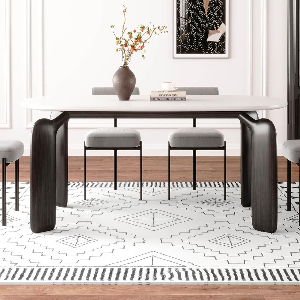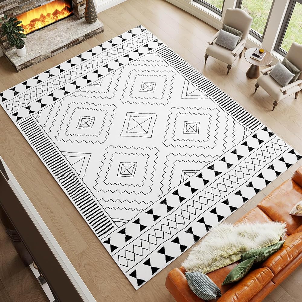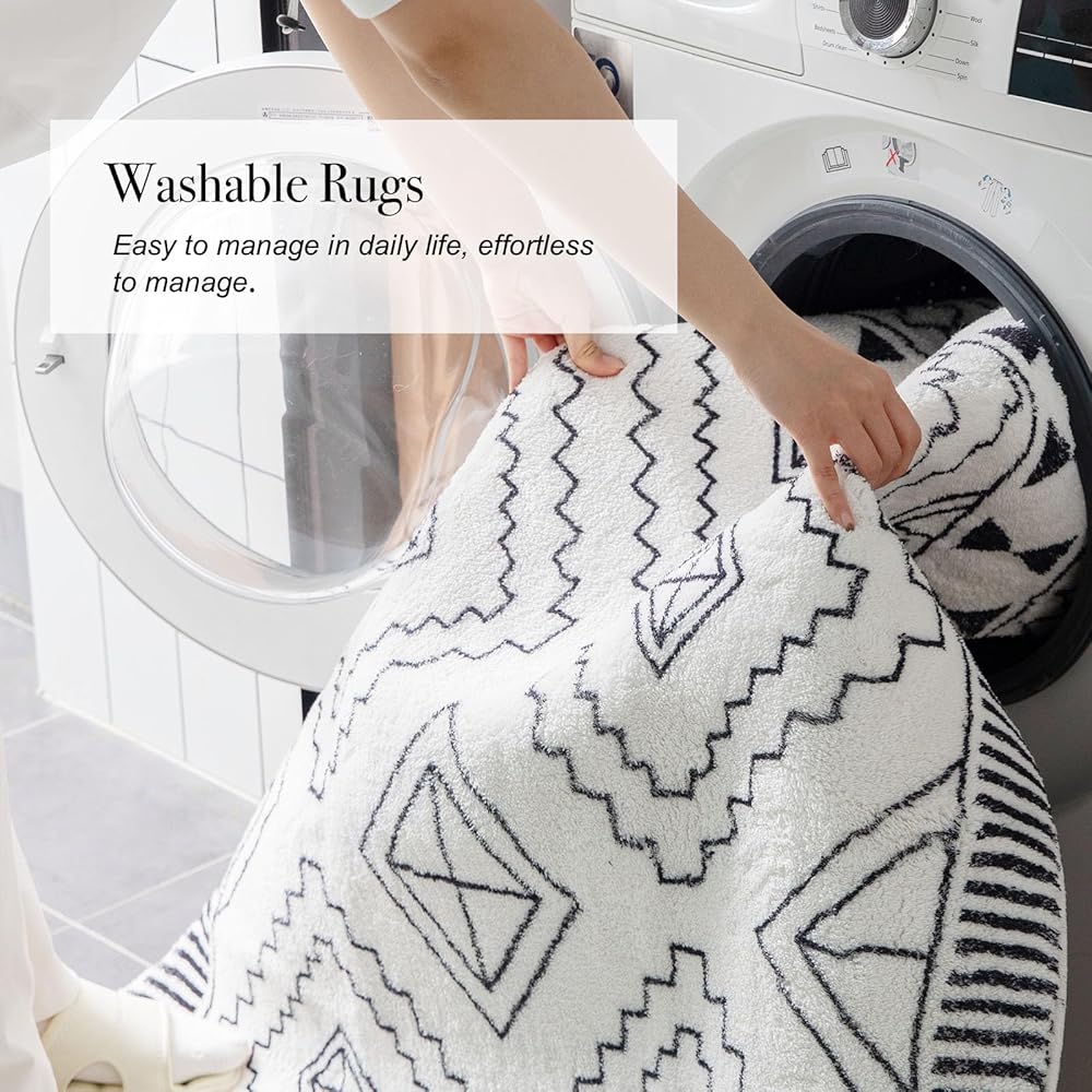 [فائقة النعومة وصديقة للبشرة] سجادتنا الهندسية باللونين الأبيض والأسود، المصنوعة من الكشمير الصناعي، أكثر كريمية ونعومة من السجاد التقليدي. إنه مثالي للمشي حافي القدمين، مما يوفر دفء مريح للغاية لمنزلك.