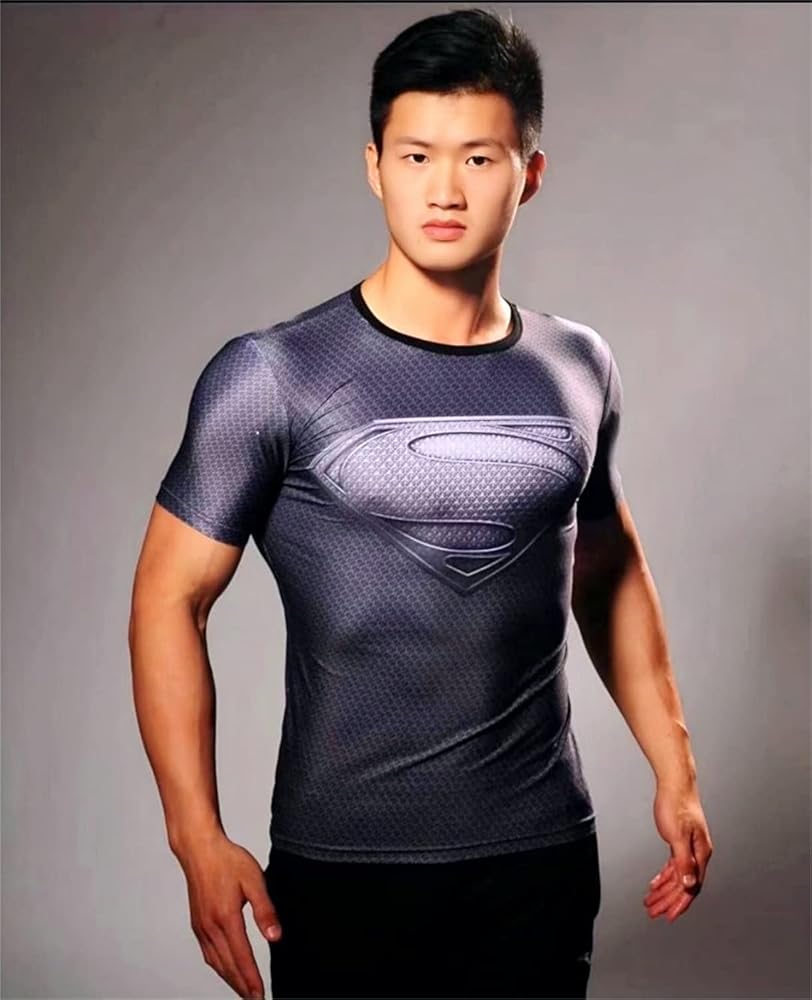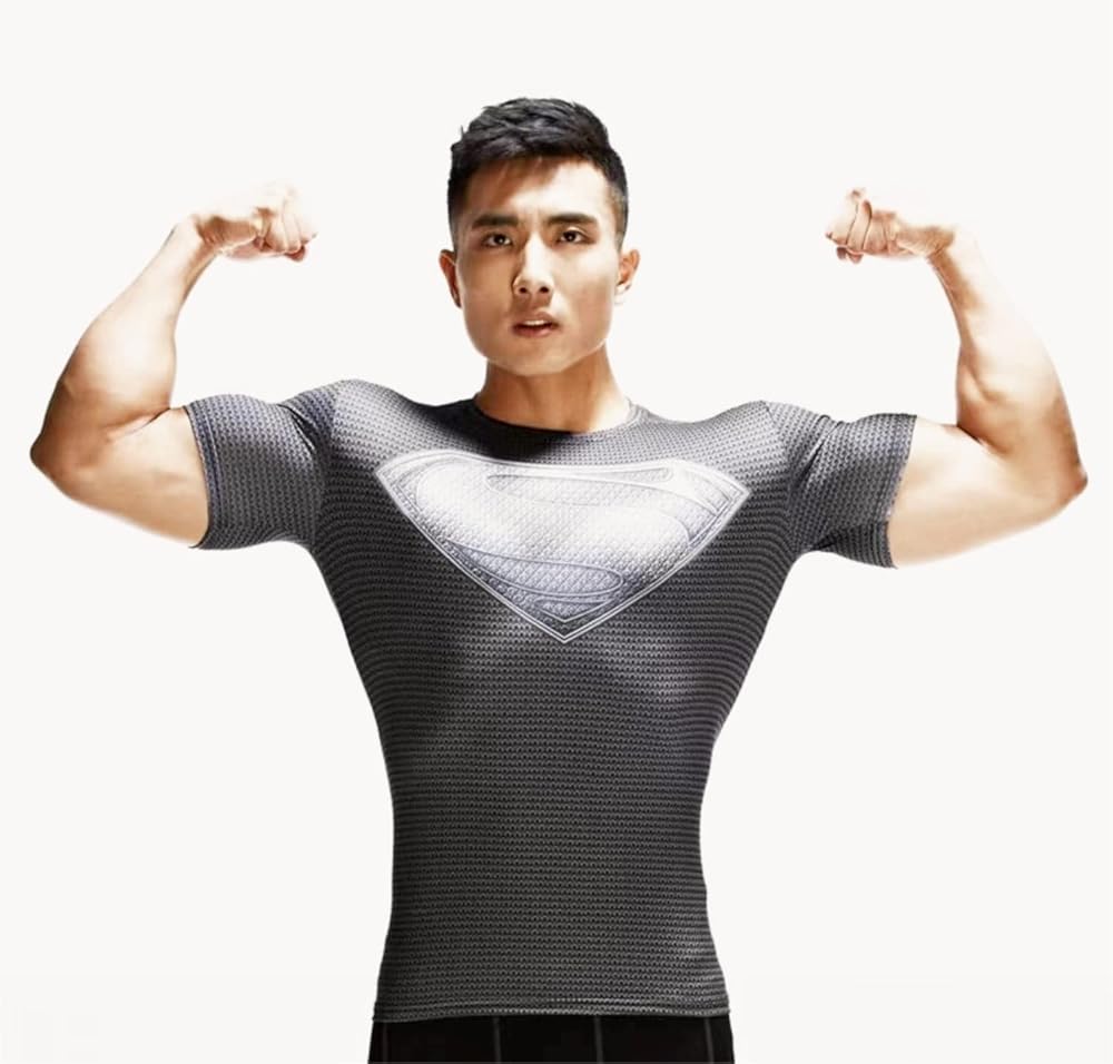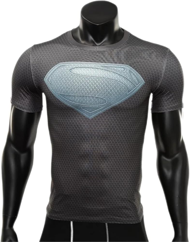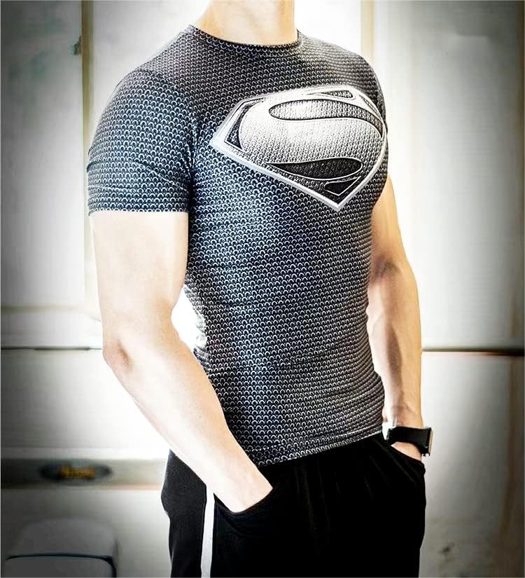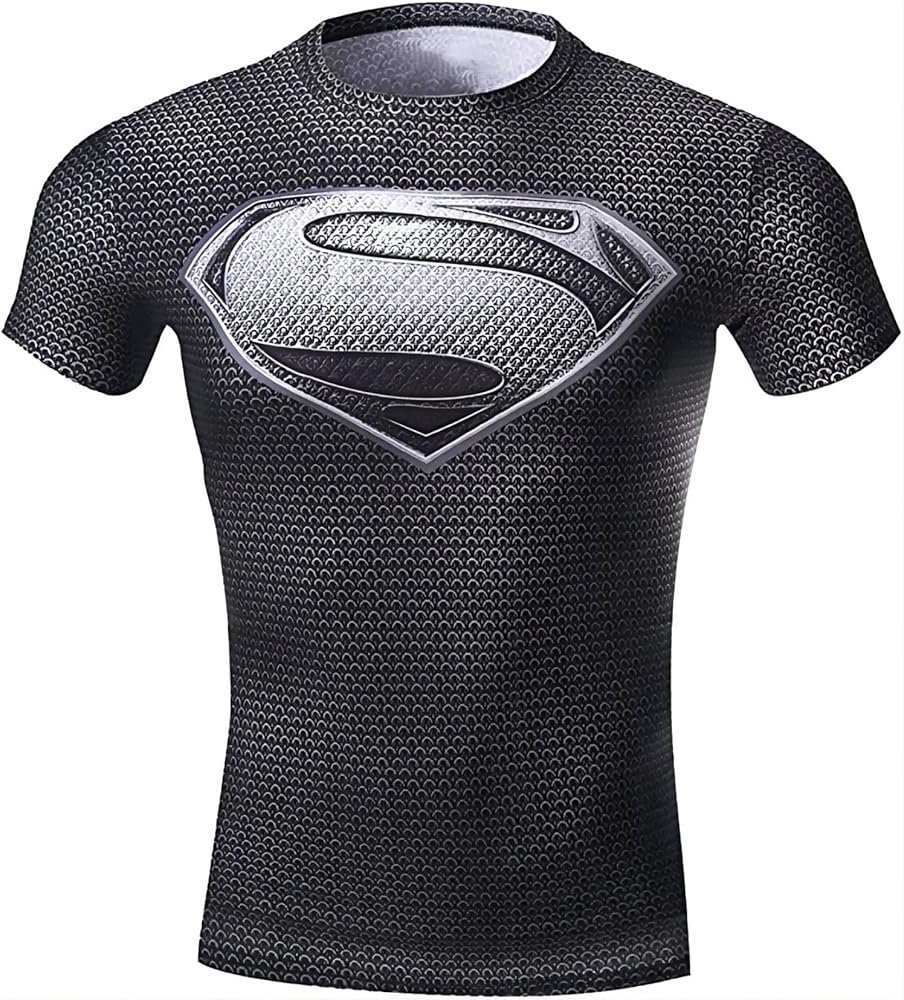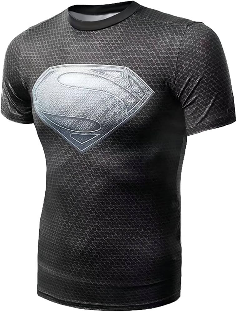 قميص ضغط للرجال، قميص رياضي للياقة البدنية بأكمام قصيرة ومطبوع بطباعة ثلاثية الأبعاد للأبطال الخارقين، قميص رياضي للتمرين باللون الأسود للرجال