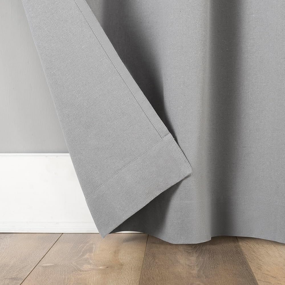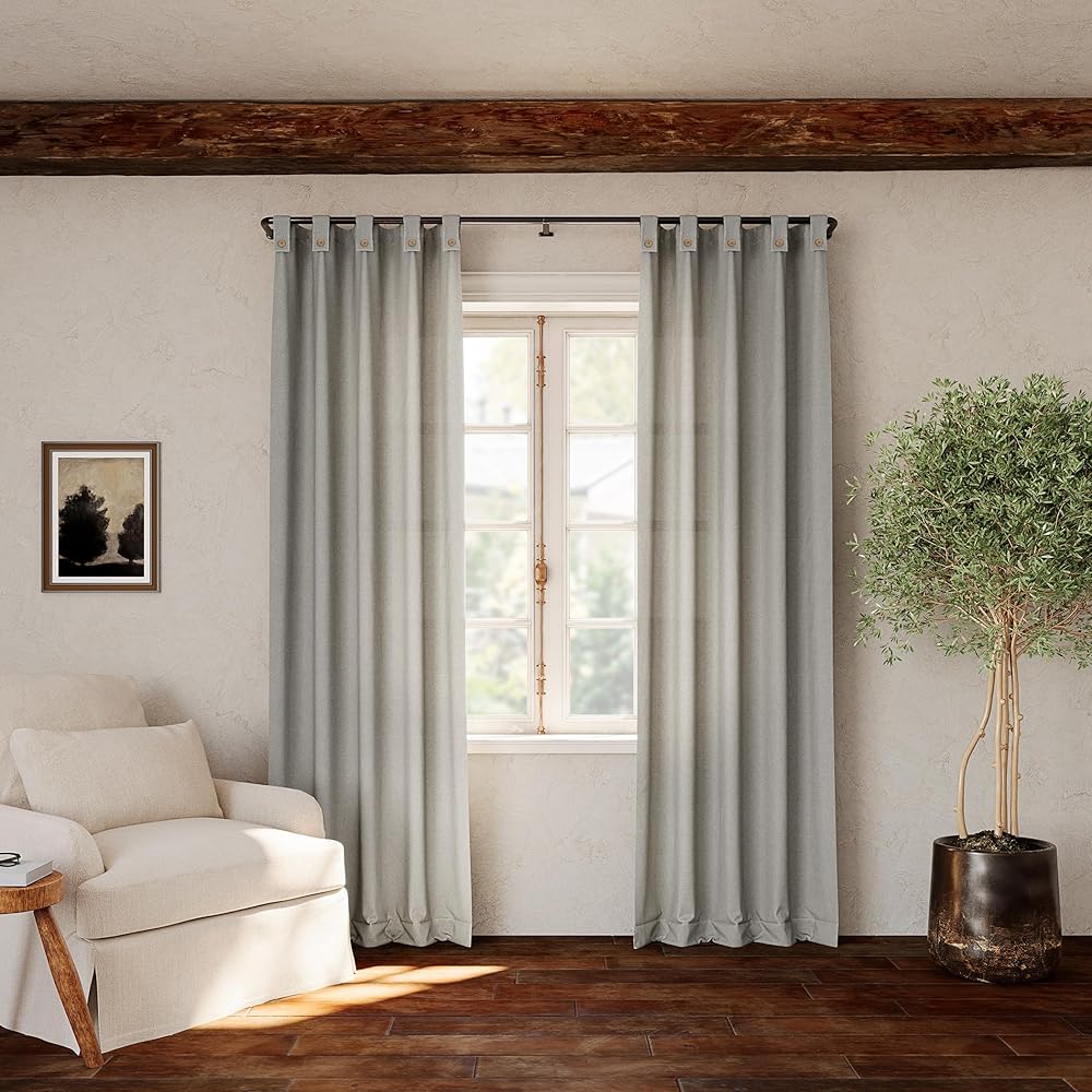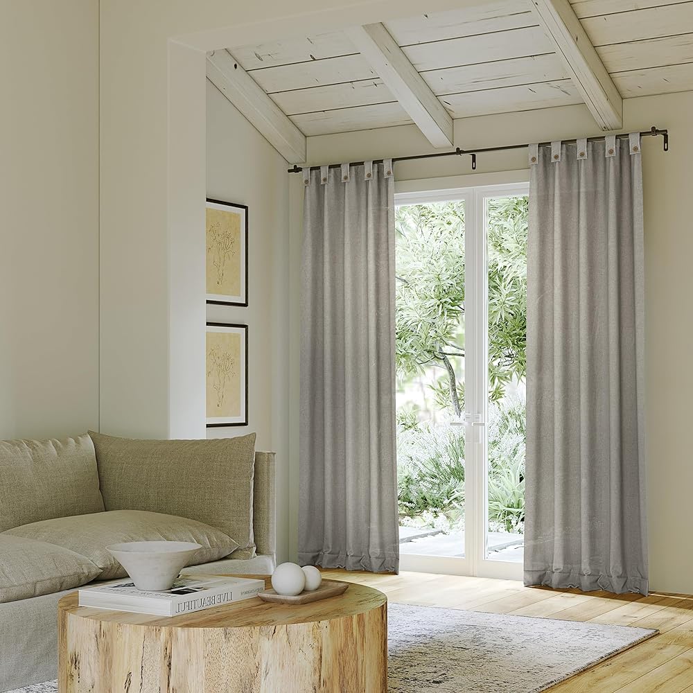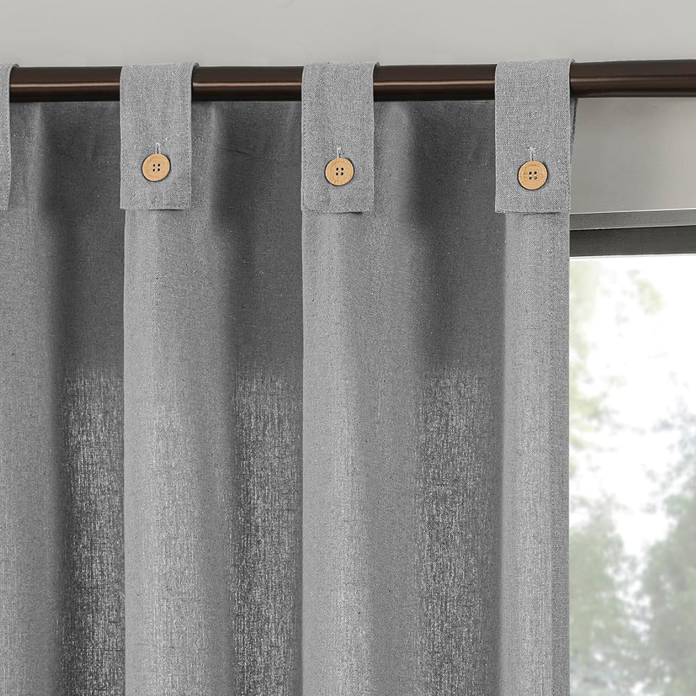 A washed cotton blend fabric embellished with button closure tabs, the Tab Top Curtain from Archaeo brings next-level design detail to your windows. The natural worn texture semi-sheer fabric gently filters light while enhancing privacy. Dress it up with another Archaeo curtain on a double rod, or keep it casual as a standalone curtain. Tab top design allows for simple slide-through installation on curtain rods up to 1 ½” in diameter. Sold as individual panels. Measure carefully before selecting your desired size and quantity. Sold as individual panels measuring 40" width by 84" length in color gray. Measure carefully before selecting your desired size and quantity. Rod not included. Machine wash cold on gentle cycle. Use non-chlorine bleach when needed. Line dry, using a cool iron as needed.