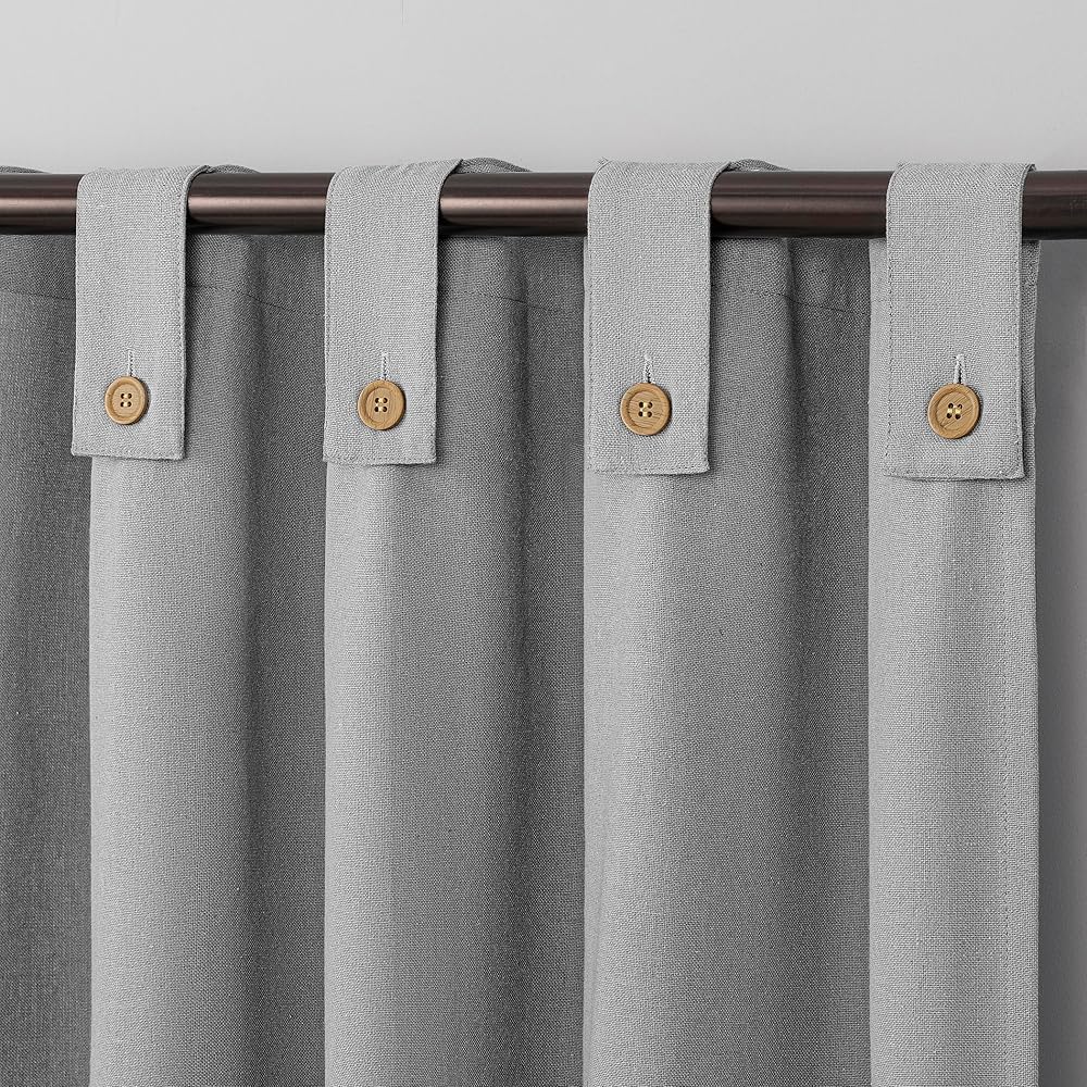 Tab top design with button closures ideal for curtain rods up to 1.5" in diameter