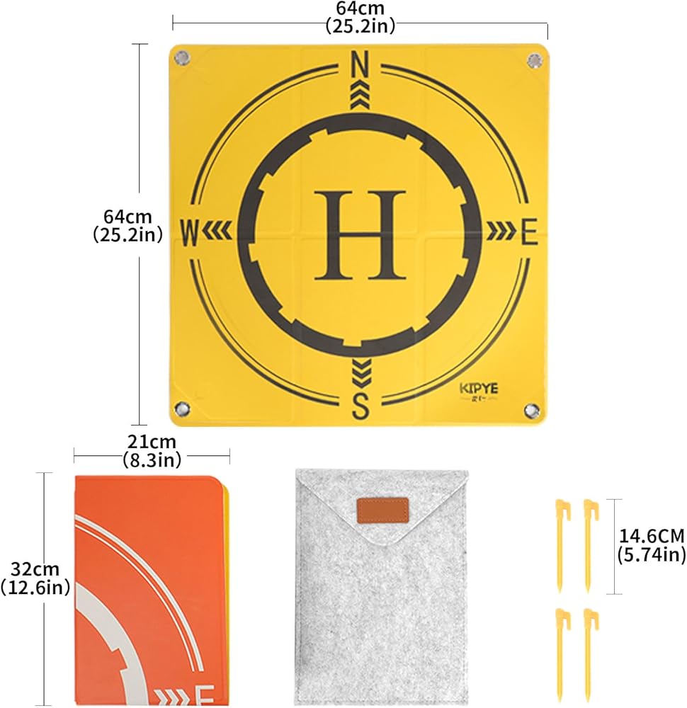 وظيفة ومحمولة: مقاس 21.3 بوصة × 21.3 بوصة (54 × 54 سم)، سهل الطي يسمح لك بأخذها إلى أي مكان. ساعد طائرتك بدون طيار في العثور على موضع المنزل بسهولة، وقوي بما يكفي لاستخدامه على الرمال أو العشب المتضخم أو الطرق الترابية غير المستوية أو في الثلج.