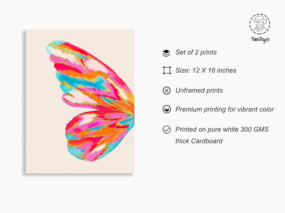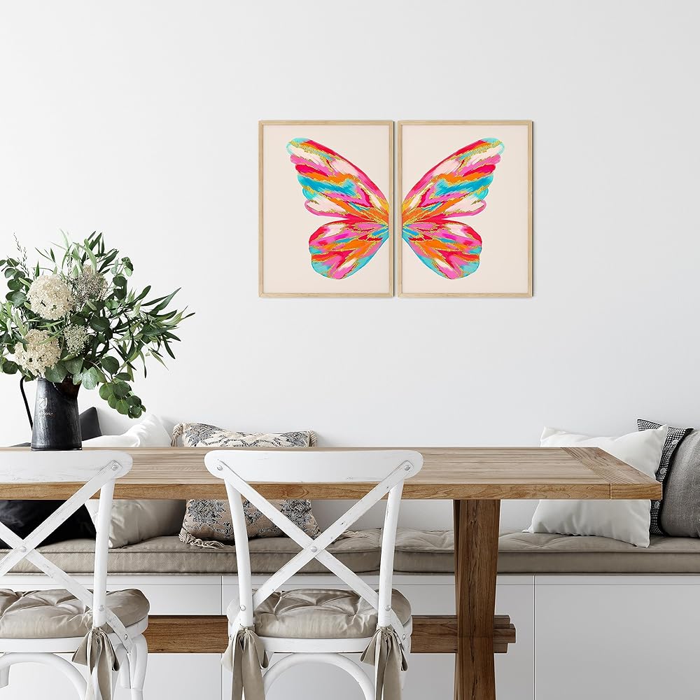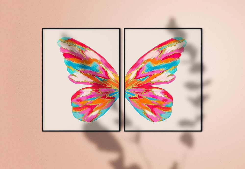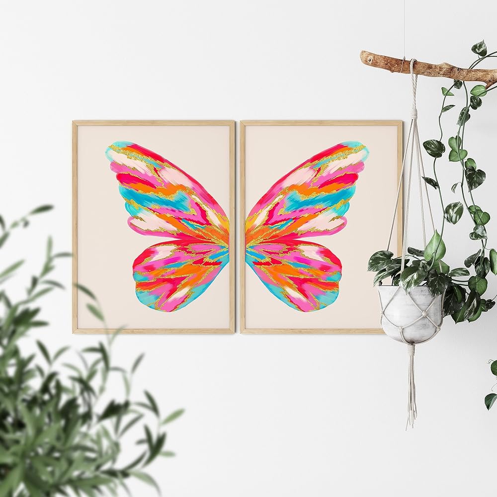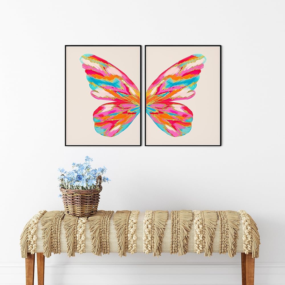 تو ديز ديكور غرفة بريبي، لوحة فنية جدارية على شكل فراشة لشقة الكلية، بوستر سكن بناتي زهري وبرتقالي، مطبوعات كبيرة عصرية غير تقليدية لغرفة النوم (12 انش × 16 انش، مجموعة من قطعتين، بدون إطار)