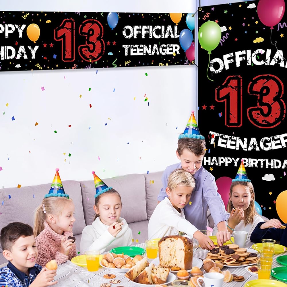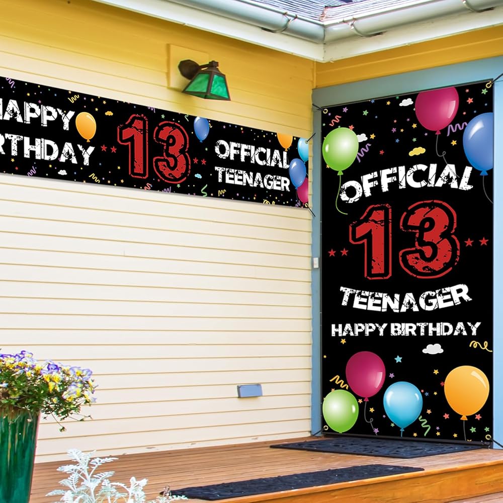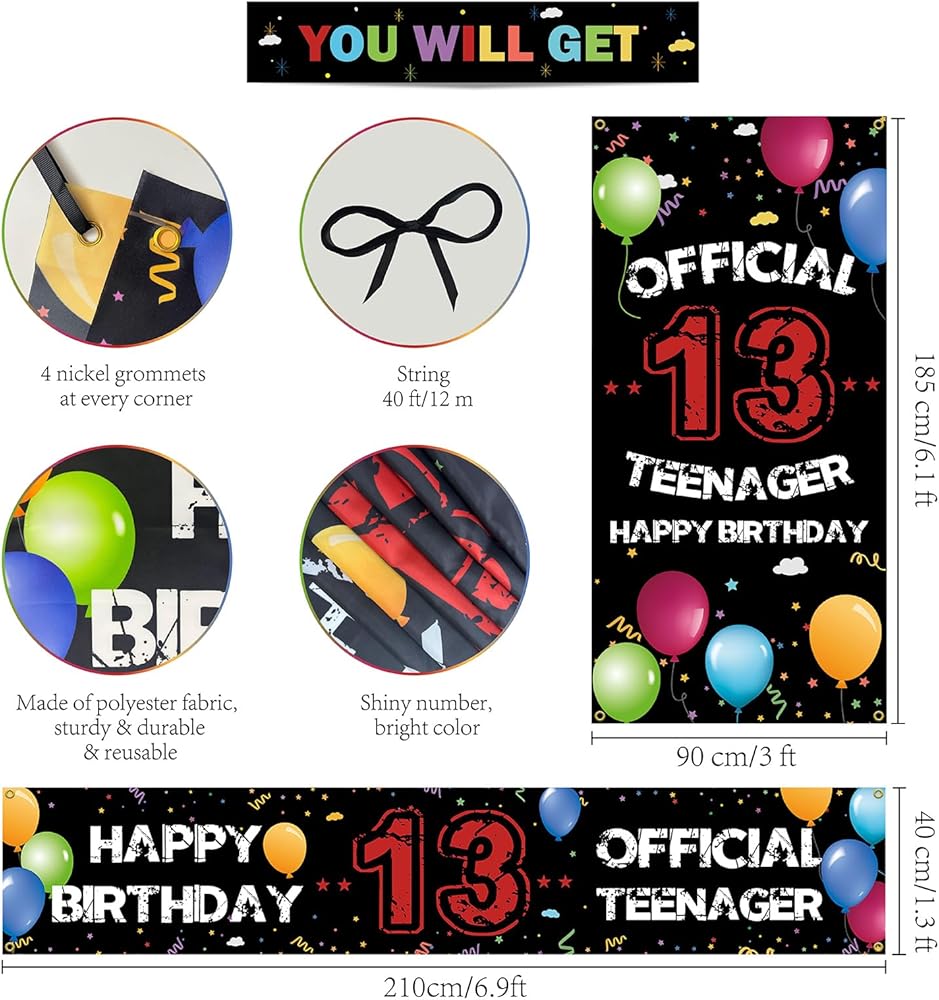 ✿ لون ساطع ونابض بالحياة | يمثل إضافة رائعة: الألوان الزاهية والكلمات البارزة والتصميم النابض بالحياة تجعل هذه المجموعة مثالية لحفلات عيد الميلاد الرسمية للمراهقين 13 للأولاد والبنات. يمكن استخدامها كخلفية لطاولات الحلوى أو الهدايا أو خلفية كشك الصور أو ملصق الحفلات أو لافتة الفناء. مناسبة للاستخدام الداخلي والخارجي، ويمكن استخدامها معًا أو بشكل منفصل لتزيين مناطق مختلفة.