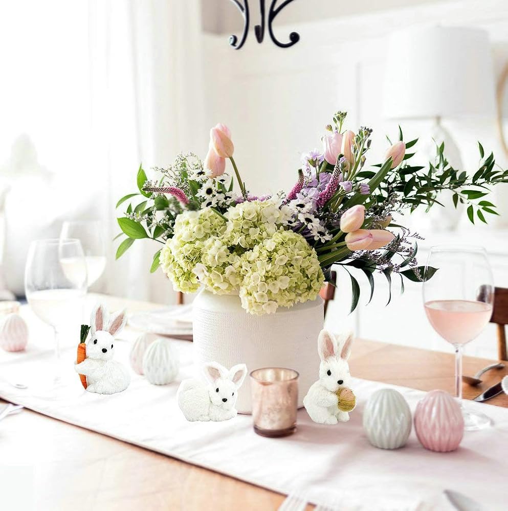 زين طاولتك وحديقتك الداخلية بهذه التماثيل اللطيفة والمحببة لأرانب عيد الفصح. تأتي في شعور طبيعي بالربيع. سيبدو الأرنب الصغير جميلاً على أي طاولة أو سطح طاولة أو رف كتب. يمكنك حتى تقديم هذه التماثيل للأصدقاء والأحباء في عيد الفصح وأعياد الميلاد.