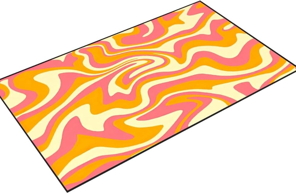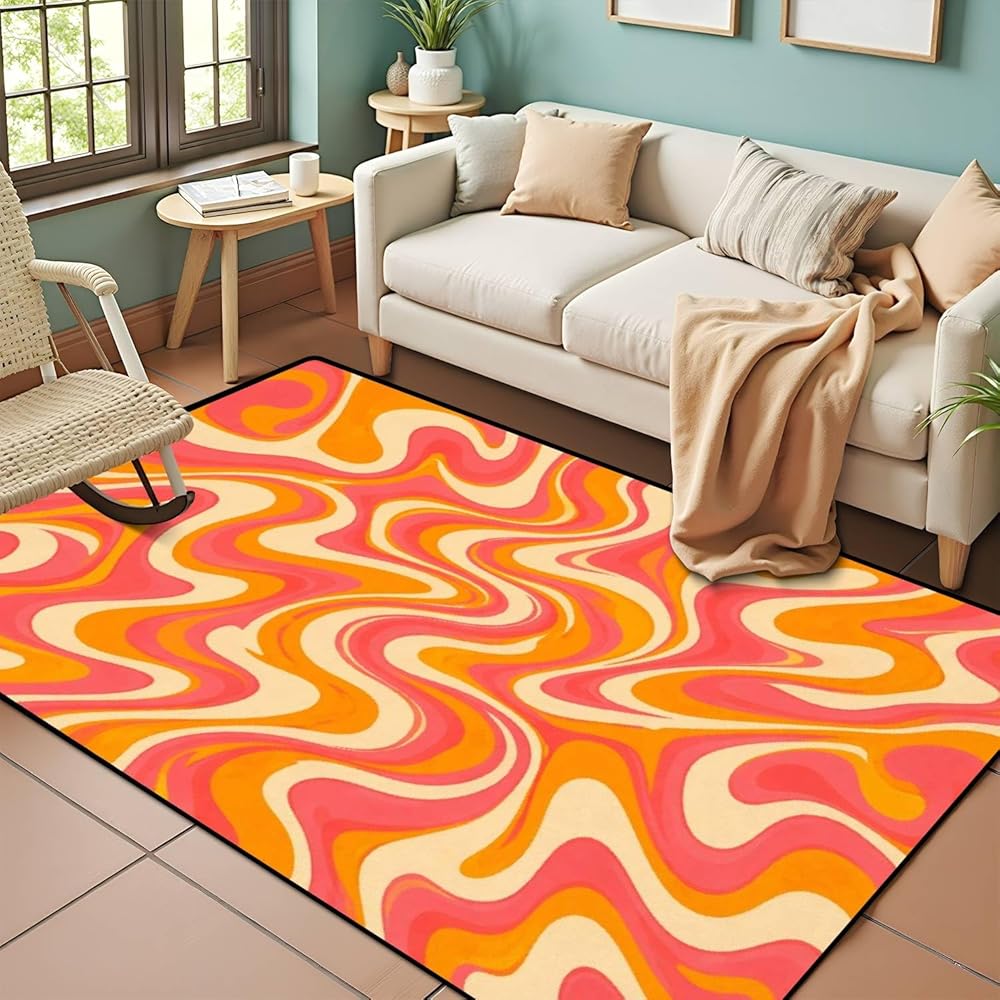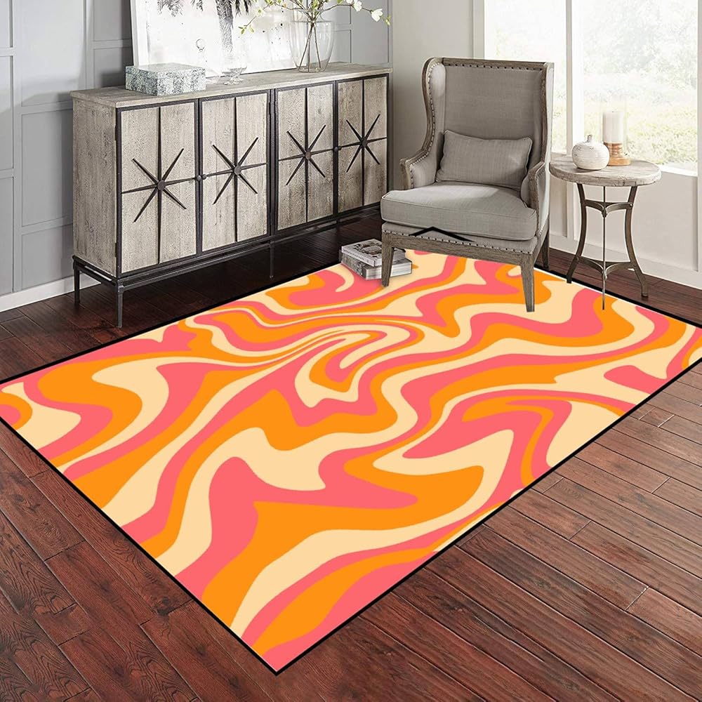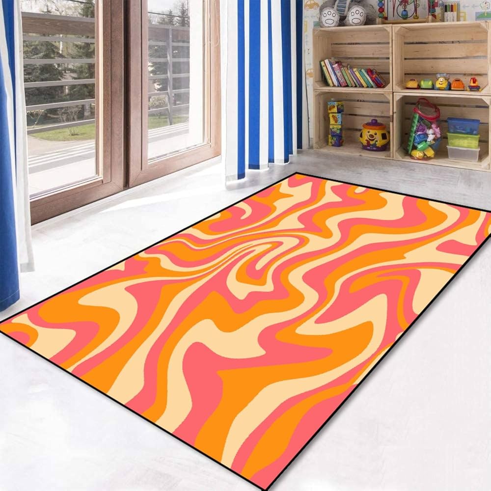 PeeNoke 1970 متموجة دوامة سلسة برتقالية وردية الألوان مرسومة باليد السبعينيات نمط منطقة البساط في الهواء الطلق سجادة الفناء لعب حصيرة الكلمة حصيرة السجاد الحديثة عدم الانزلاق ديكور المنزل غرفة المعيشة غرفة نوم الحضانة، 3x5 قدم