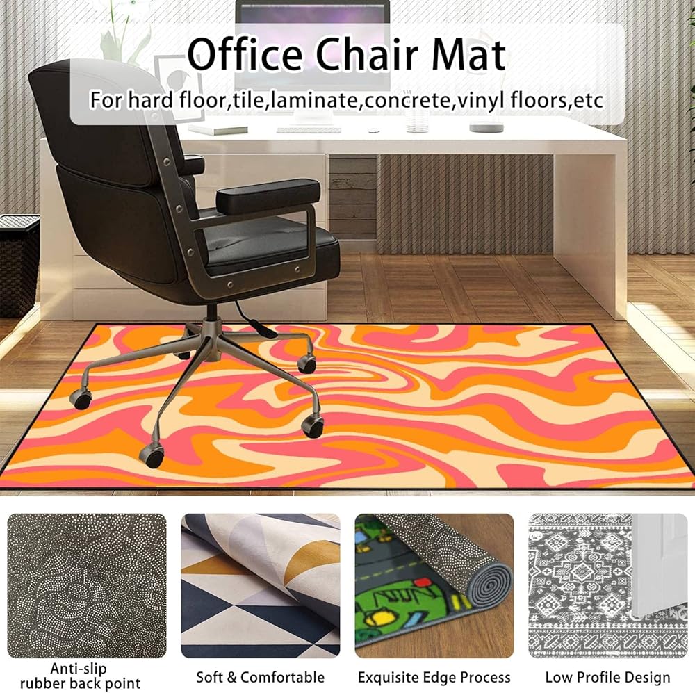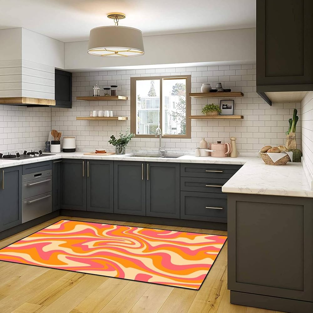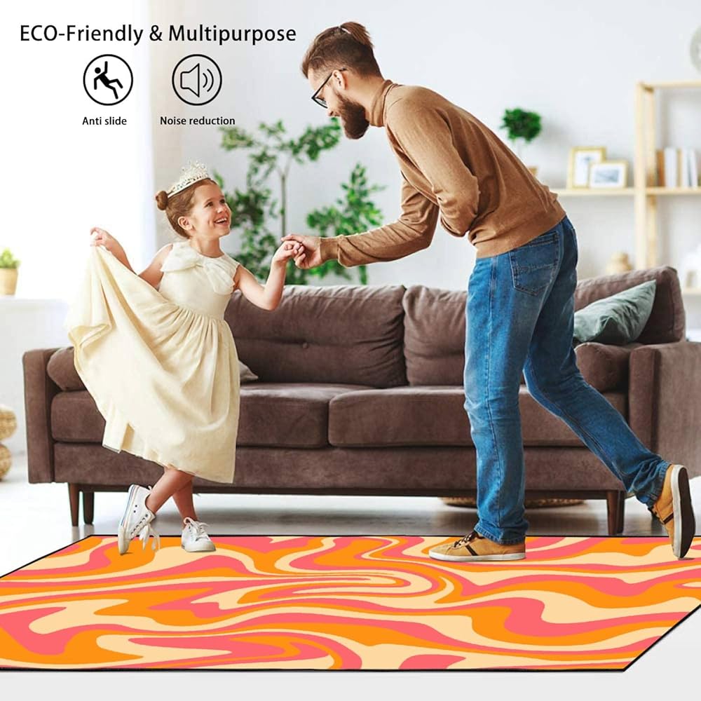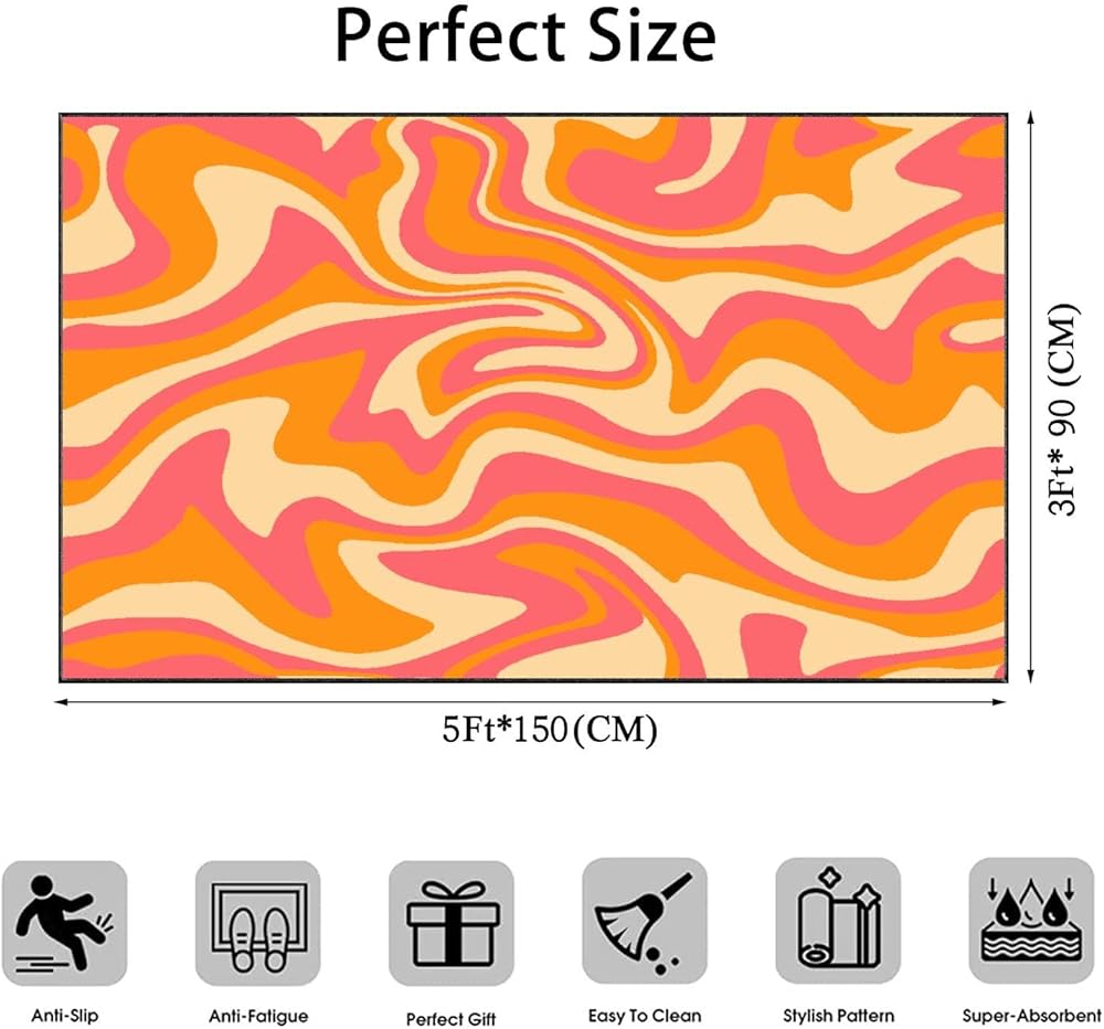 PeeNoke 1970 متموجة دوامة سلسة برتقالية وردية الألوان مرسومة باليد السبعينيات نمط منطقة البساط في الهواء الطلق سجادة الفناء لعب حصيرة الكلمة حصيرة السجاد الحديثة عدم الانزلاق ديكور المنزل غرفة المعيشة غرفة نوم الحضانة، 3x5 قدم