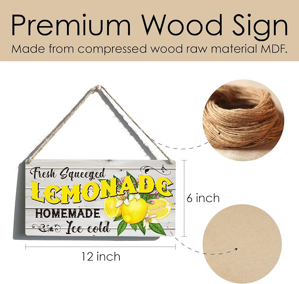 • علامة خشبية فاخرة: مصنوعة من الخشب المضغوط المواد الخام MDF. تحتوي كل لافتة على فتحتين تعليق مقطوعتين مسبقًا وطول خيوط. إنه نمط ريفي جذاب ومتعدد الاستخدامات.