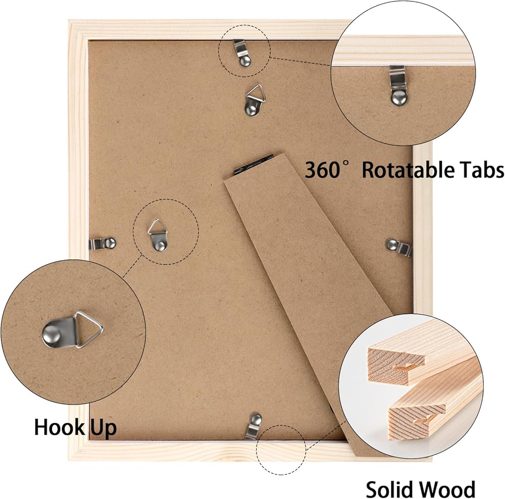 • EASY TO INSTALL: With 4 flexible clasps on the back of the 8 by 10 photo frame, easy to open and insertphotos. Flexible to hang wood frame on the wall with hook or use the included easel to place it on the table.