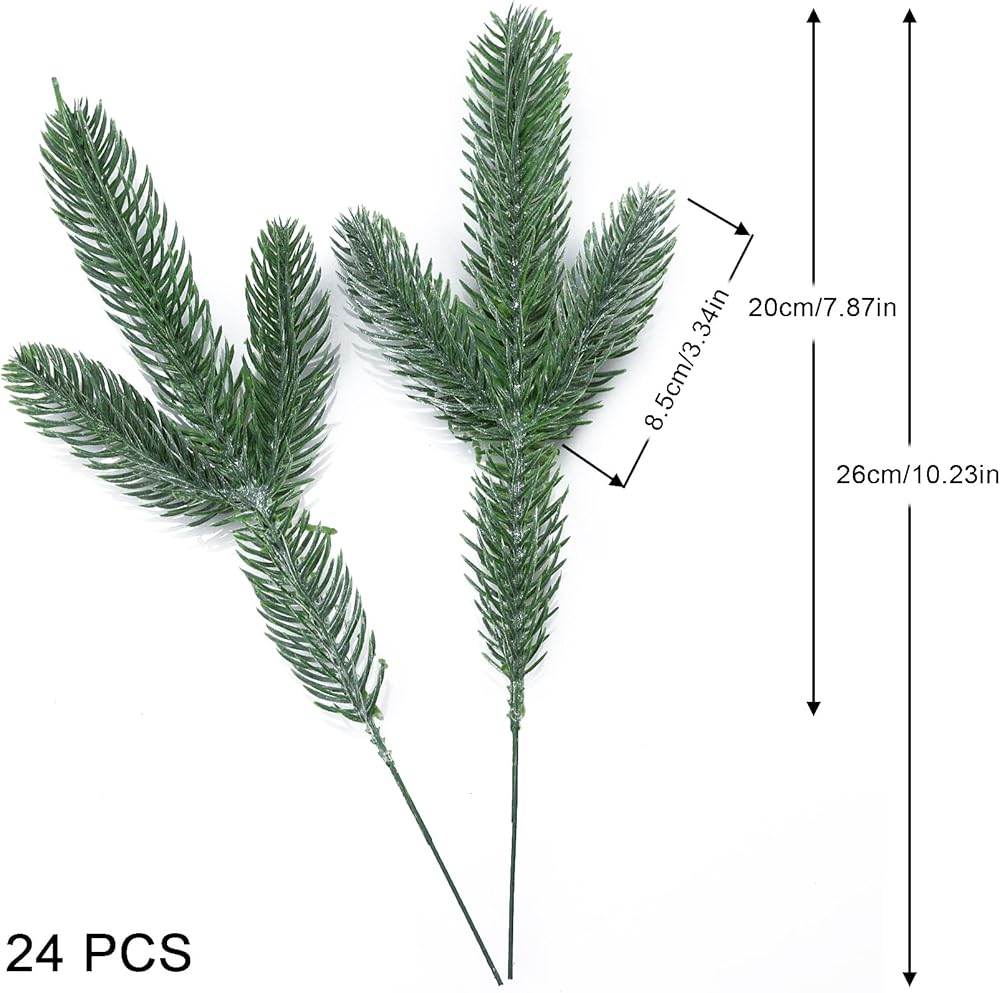 Lorigun 24 قطعة من فروع الصنوبر الاصطناعي، خضرة عيد الميلاد المزيفة للحرف اليدوية، إبر الصنوبر الاصطناعية DIY إكليل شجرة عيد الميلاد حشو فروع الزينة فروع فو دائمة الخضرة