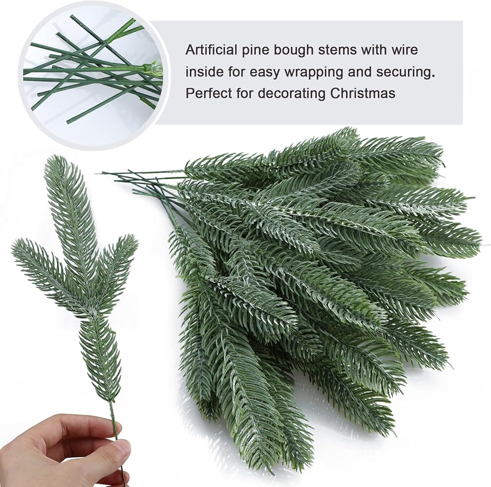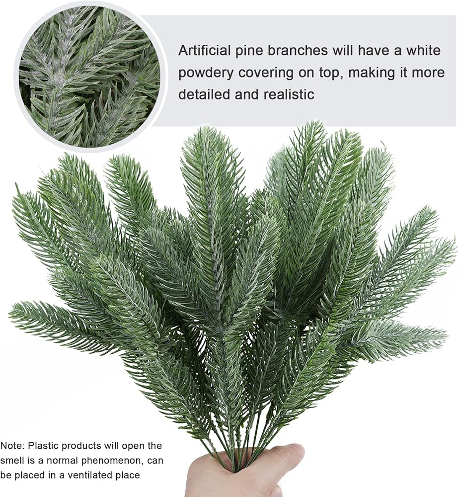خضرة عيد الميلاد: يمكن مطابقة سيقان الصنوبر الاصطناعية النابضة بالحياة مع أي ديكورات بطابع عيد الميلاد، مثالية لتزيين أشجار عيد الميلاد، والحرف اليدوية، وتزيين أغلفة الهدايا، وما إلى ذلك، مما يضيف لمسة احتفالية لعيد الميلاد.