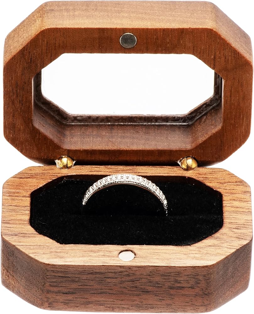 صندوق خواتم خشبي فردي عتيق للخطوبة مع غطاء اكريليك لعرض الخواتم وعرض المجوهرات