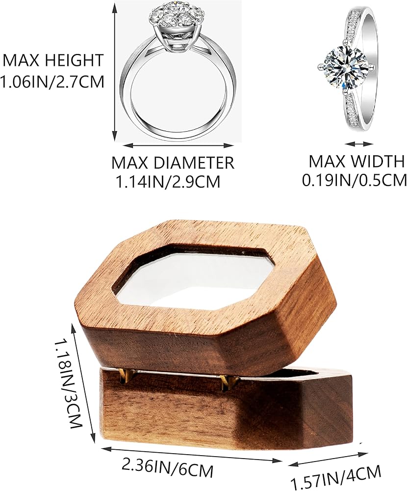 • ملاحظة: يناسب الصندوق هذا الخواتم أقصى ارتفاع/عمق 1.06 انش/2.7 سم (كما هو موضح في الصورة)، يرجى التحقق من ارتفاع/عمق الخواتم. يناسب الصندوق معظم مقاسات الخواتم. تتضمن العبوة صندوق خواتم واحد (الخاتم غير متضمن).