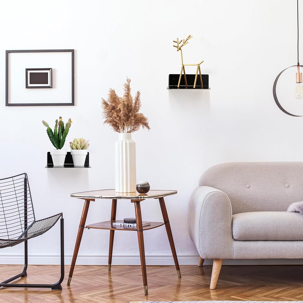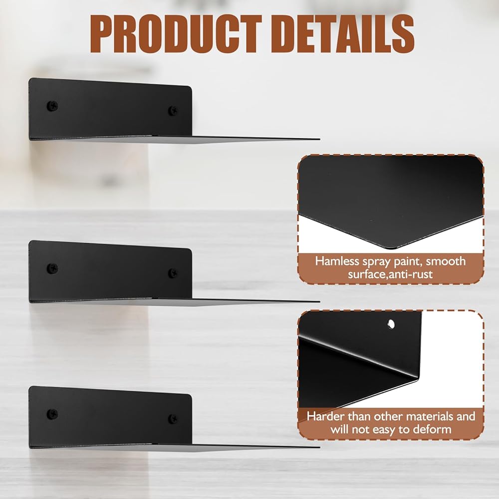 المقاس المناسب: يبلغ حجم هذا الرف المعدني الأسود حوالي 6.7 × 6.3 × 2 انش (الطول × العرض × الارتفاع)، وهو ما يكفي لوضع بعض الأشياء الصغيرة في الحياة اليومية، مثل إطارات الصور والدمى والعطور والكتب والعلاج العطري وغيرها من المنتجات، مما يمنحك الراحة