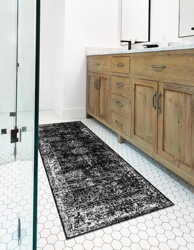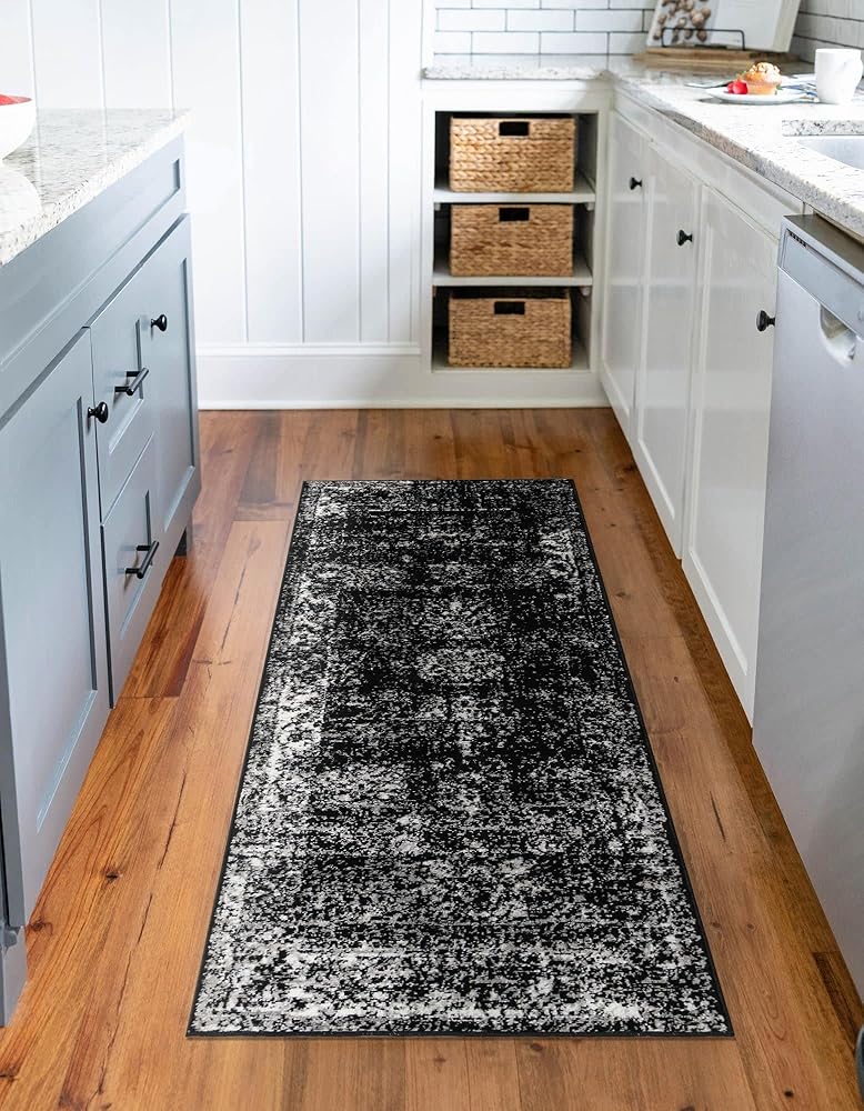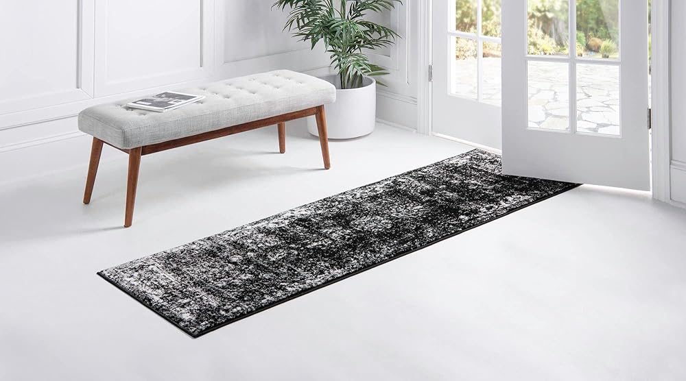 Rugs.com سجادة مجموعة مونت كارلو - 2 × 9 '10 عداء أسود متوسط ​​الحجم مثالي لغرف المعيشة وغرف الطعام الكبيرة ومخططات الأرضيات المفتوحة