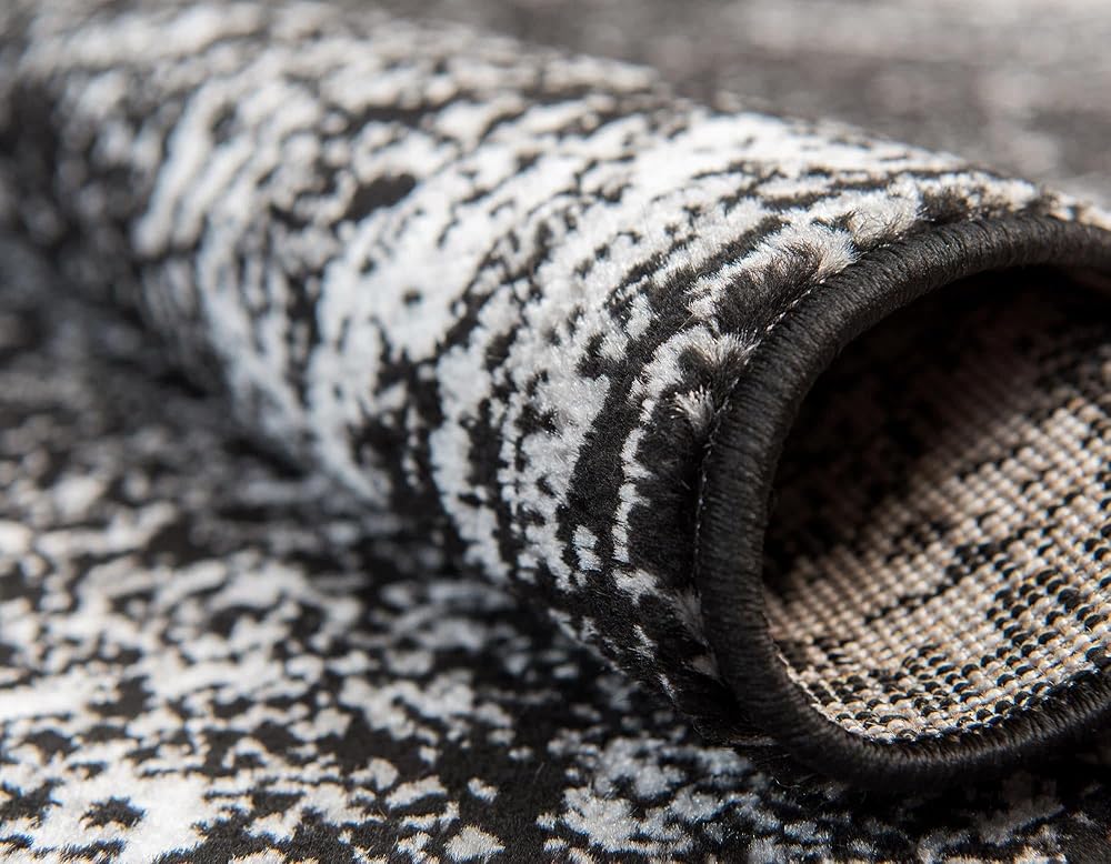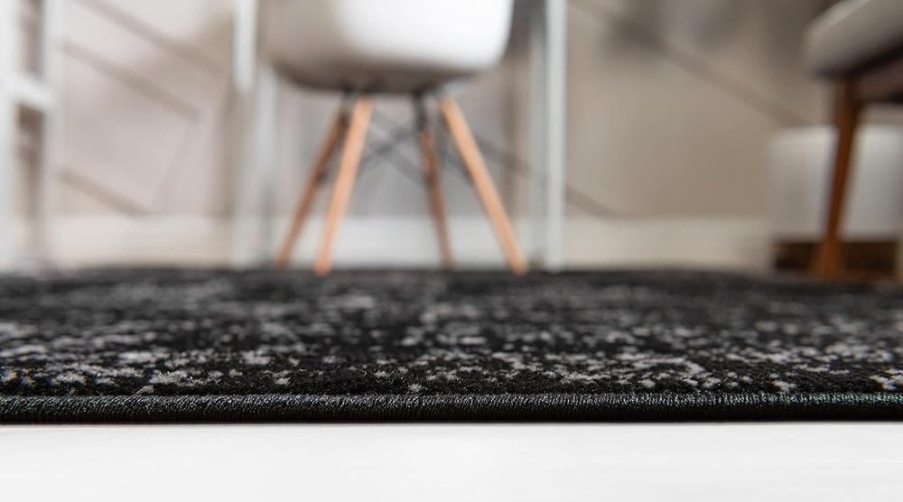 • This black rug projects power, authority, and sophistication. Make a bold statement.