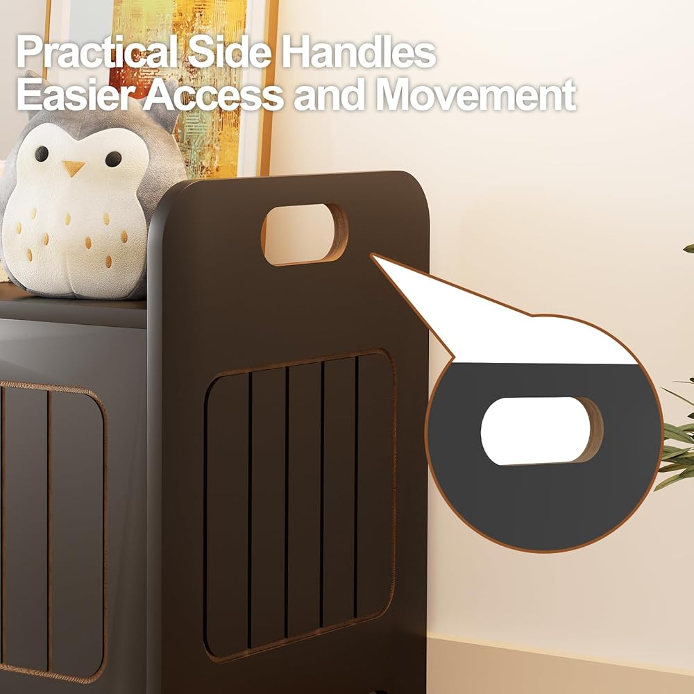 • 【آمنة وموثوقة】تحتوي خزانة ألعاب الأطفال هذه على فتحة على شكل حرف U على اللوحة الأمامية، مما يجعل من السهل الفتح والإغلاق دون القلق من أن تعلق بأصابعك. تم تجهيز وصلة اللوحة بمفصلات لضمان سلامة كل عملية فتح وإغلاق، ولتجنب الإغلاق المفاجئ للخزانة.