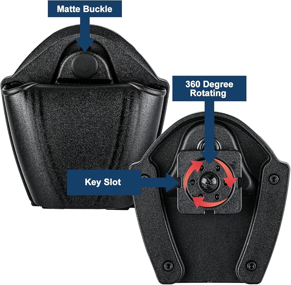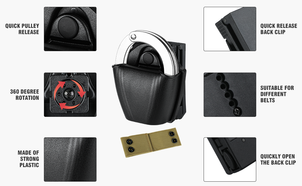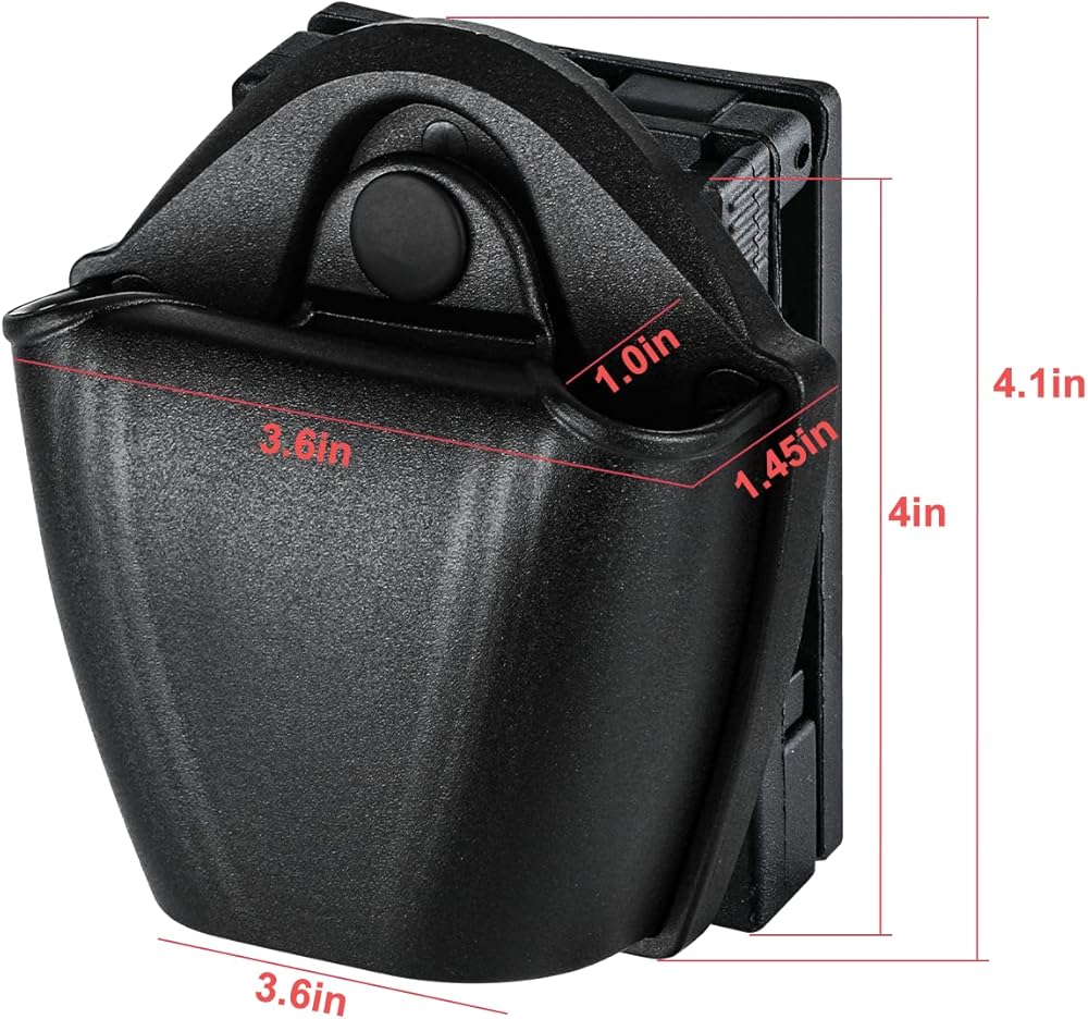 تصميم يدور 360 درجة - تم تصميمه مع وضع الراحة وسهولة الاستخدام في الاعتبار، يتميز هذا الجراب ذو الأصفاد بمشبك حزام يدور 360 درجة كاملة، مما يجعل من السهل ضبطه ومتوافق مع أي نظام MOLLE