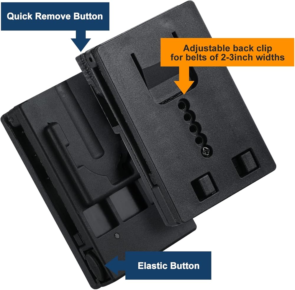 قابل للتعديل - يتيح لك مشبك العرض القابل للتعديل الموجود على الجزء الخلفي من الجراب تخصيص المقاس المناسب لحزامك، مما يضمن تثبيتًا مريحًا وآمنًا لن يهتز لأعلى وأسفل