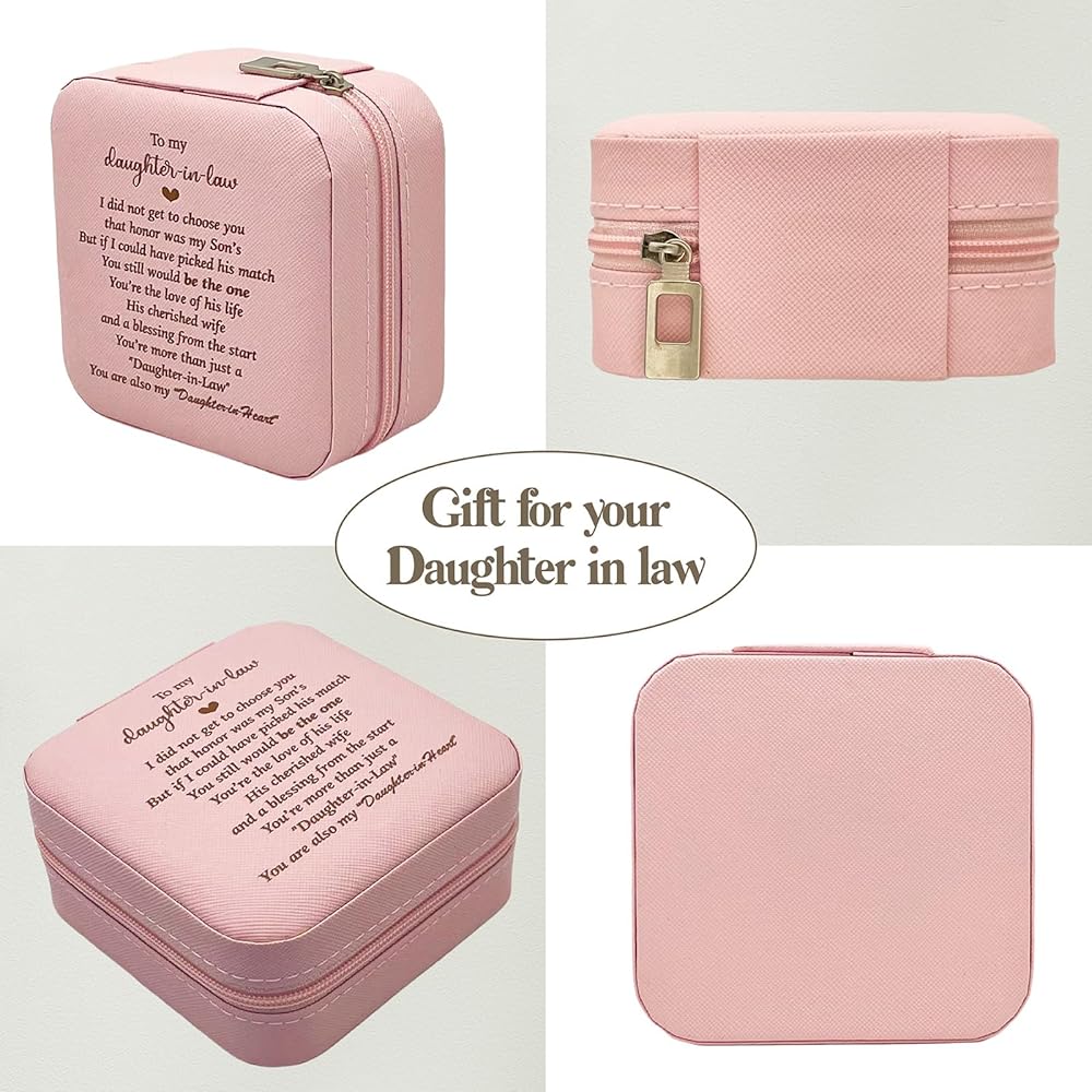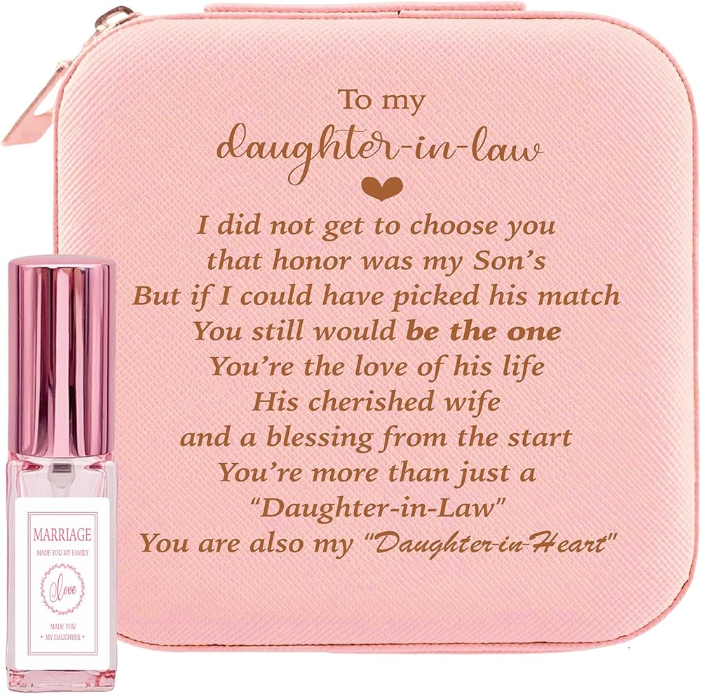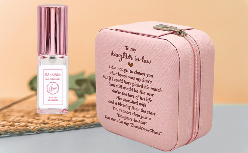صندوق تخزين مجوهرات ابنة القانون مع زجاجة عطر قابلة لإعادة الملء، هدية لابنة القانون من الأم، هدية عاطفية لابنة القانون وعيد ميلاد الزفاف وعيد الأم وعيد الميلاد