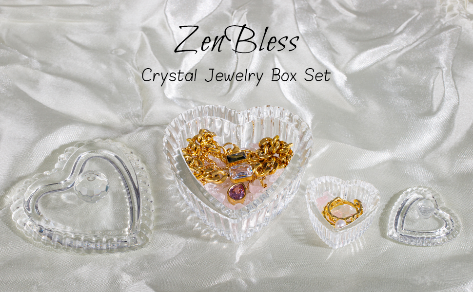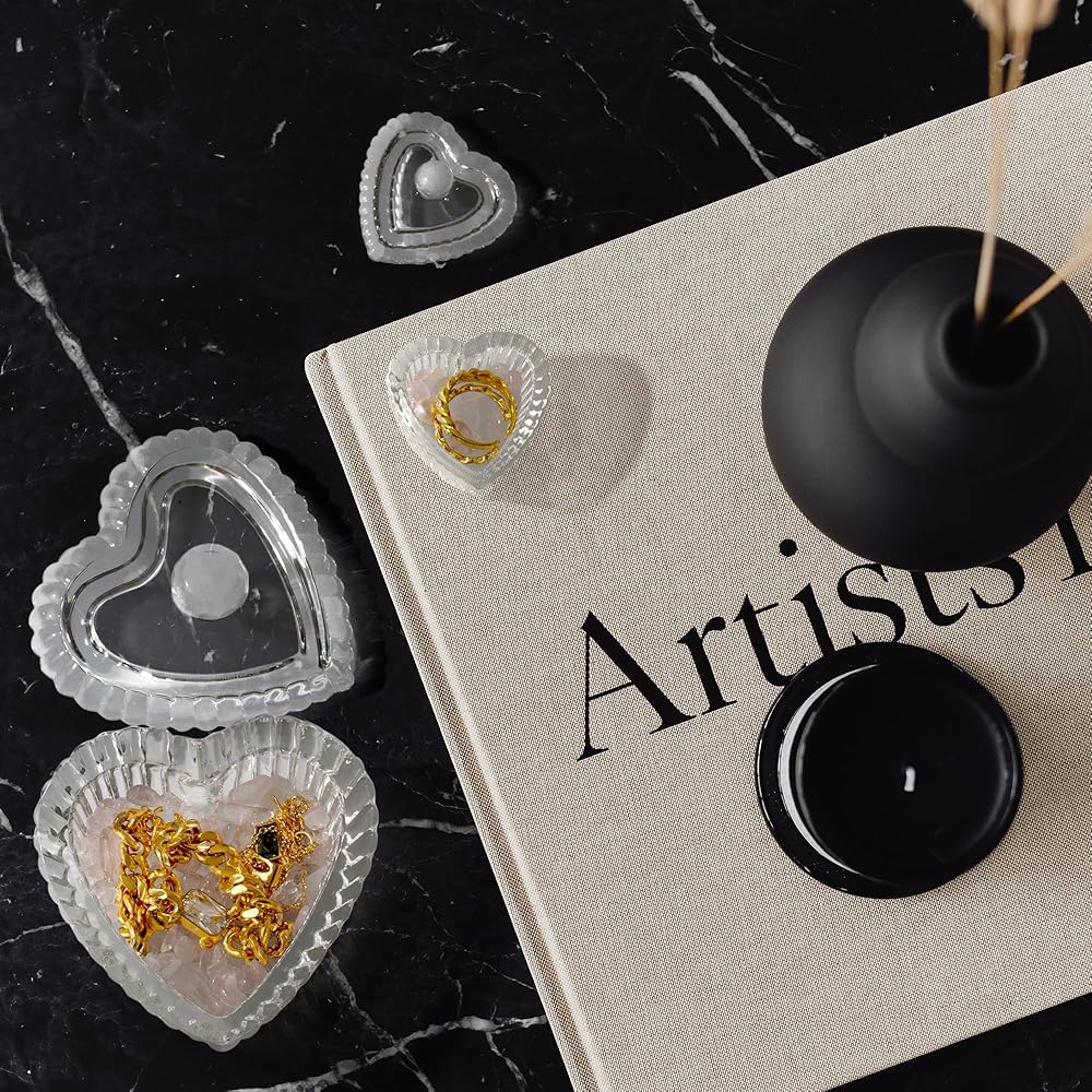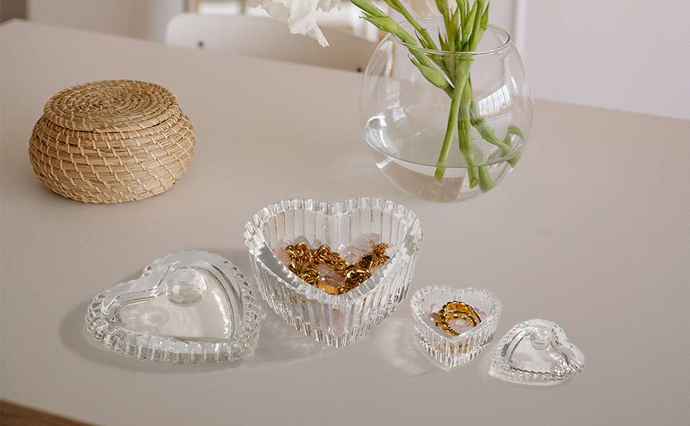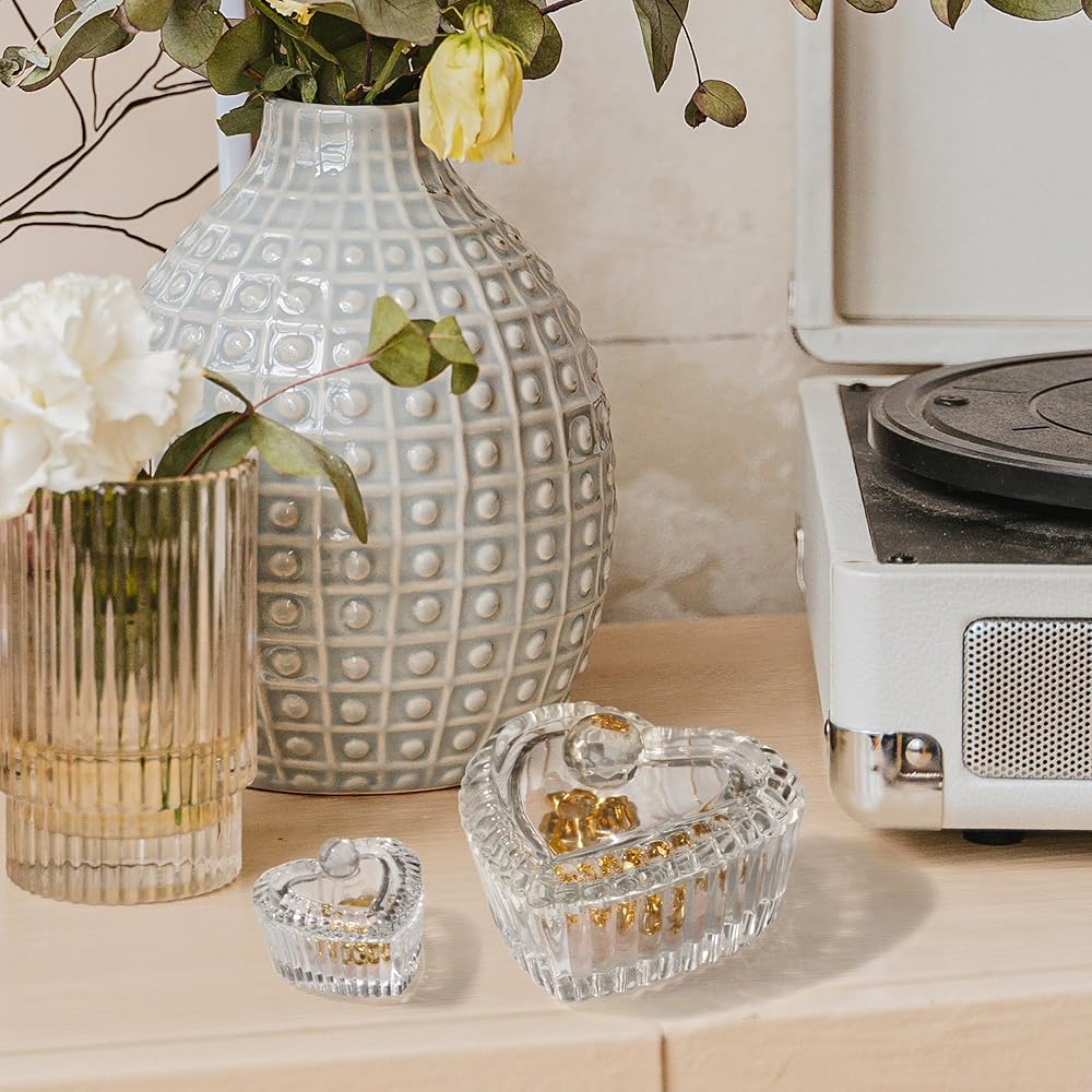 زين بليس صندوق مجوهرات على شكل قلب من الزجاج الكريستالي مع غطاء، صندوق على شكل قلب بتصميم منقوش رائع، صناديق حلي لطيفة مثالية لتخزين الاقراط والقلائد والخواتم وترتر الاظافر والحلوى