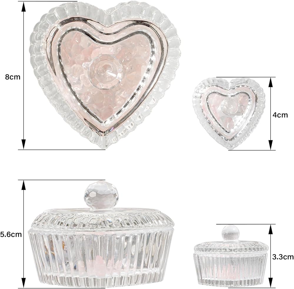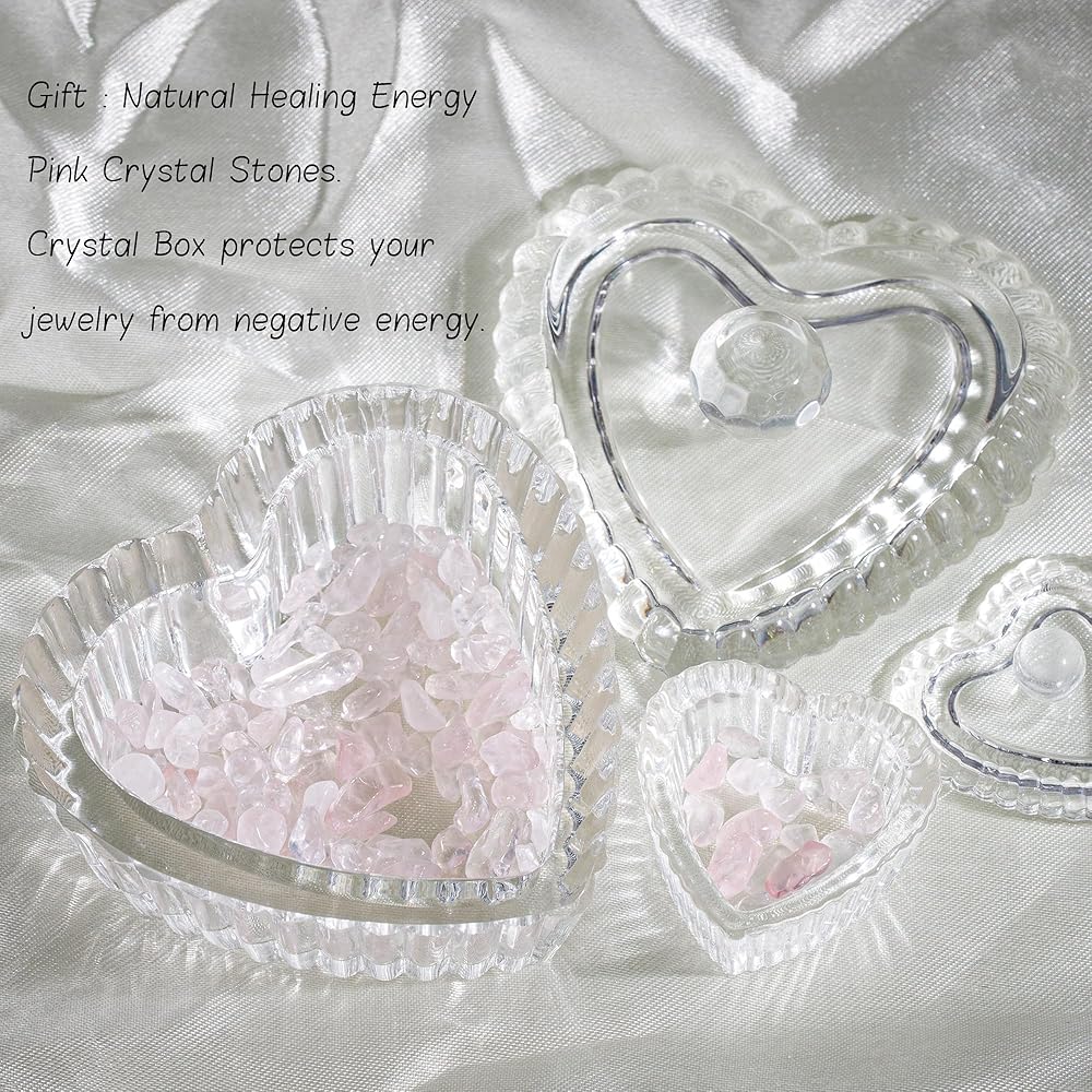 💕صندوقان للمجوهرات الكريستالية: صندوق مجوهرات كبير على شكل قلب كريستالي: 3.2 انش طول × 3.2 انش عرض × 2.2 انش ارتفاع (8 سم طول × 7.6 سم عرض × 5.6 سم ارتفاع)، صندوق مجوهرات كريستال صغير: الطول 4 سم الارتفاع 3.3 سم العرض 3.8 سم. امنح 40 غرام من حجر الكريستال الوردي الطبيعي لتنظيف الطاقة السلبية في مجوهراتك. صندوقان مجوهرات من الزجاج الكريستالي العتيق، مناسبان لتخزين مجموعة متنوعة من المجوهرات. تلبي احتياجاتك.