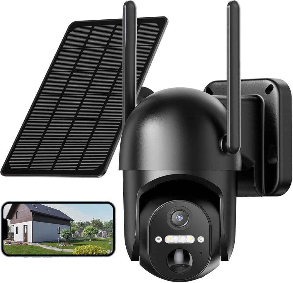 عرض 2K بزاوية 360 درجة، يعمل بالبطارية، أمان منزلي واي فاي مع رؤية ليلية ملونة، IP65