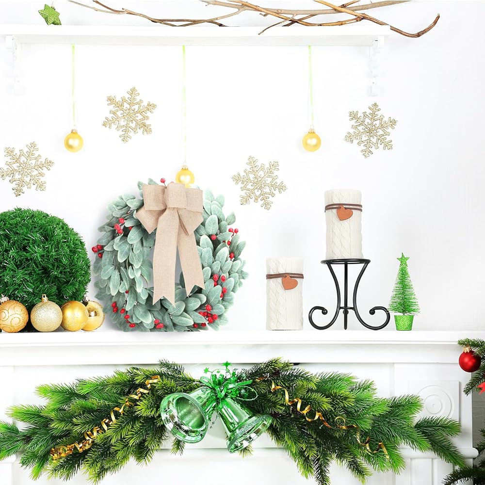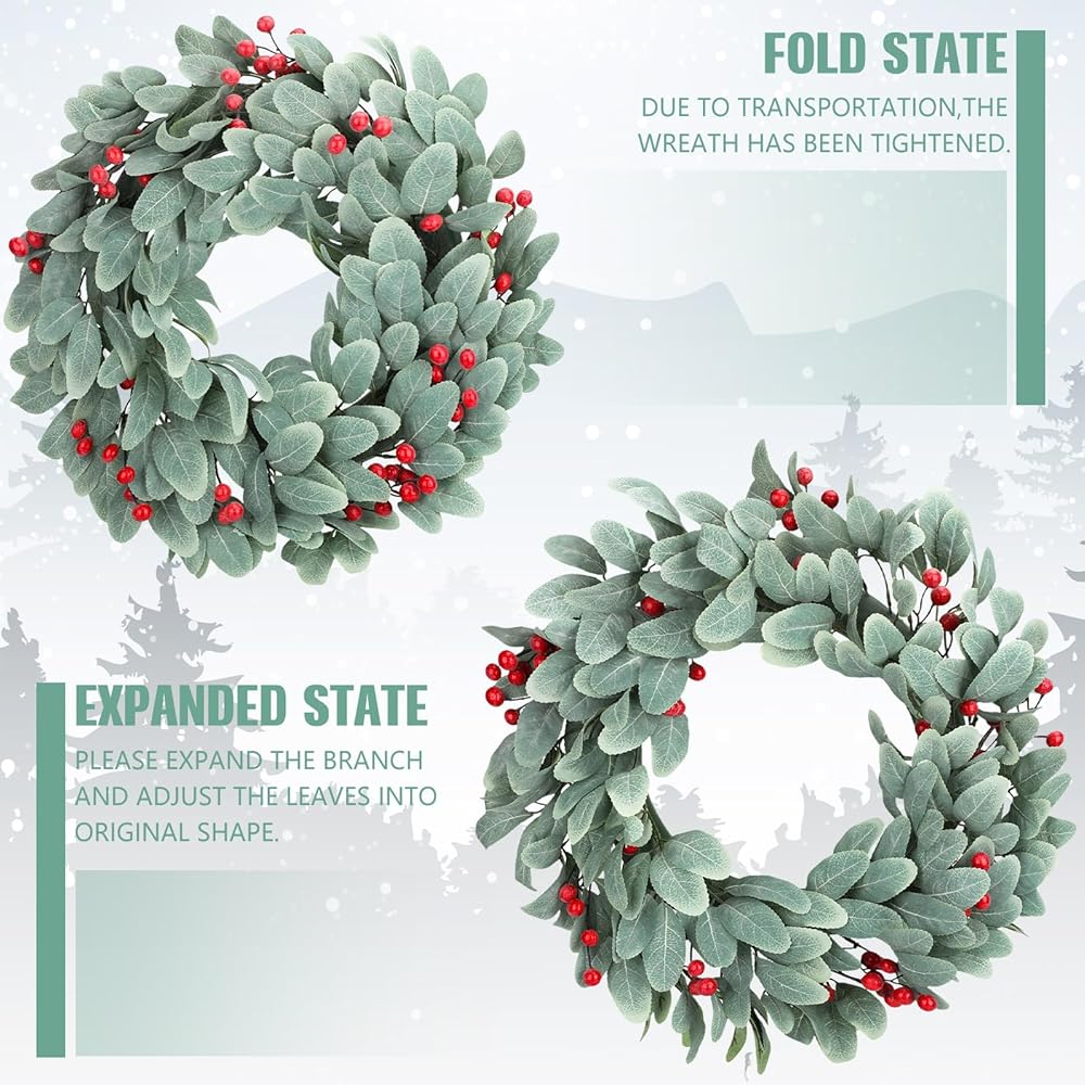 مظهر بلوري مذهل: يتميز إكليل أذن الحمل بتصميم بلوري جميل، مما يمنحها مظهرًا جذابًا للأنظار؛ يضيف تأثير الصقيع الرقيق لمسة من سحر الشتاء إلى أي غرفة أو منطقة خارجية