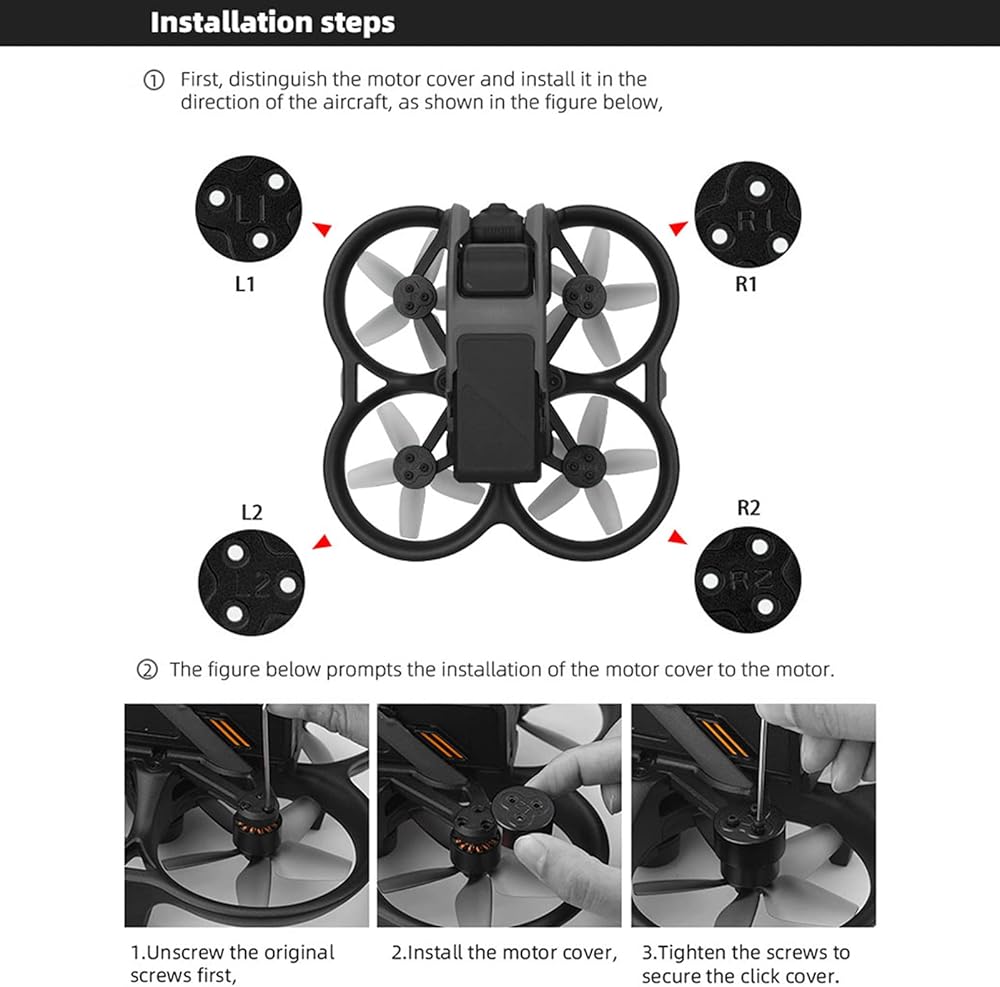 2. SMALL AND EXQUISIT: The aluminum alloy engine cover is specially made for Avata aircraft. Small and delicate, does not interfere with the flight of the plane.