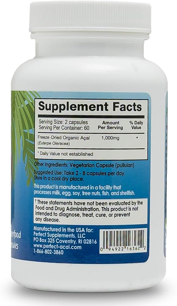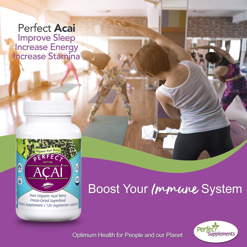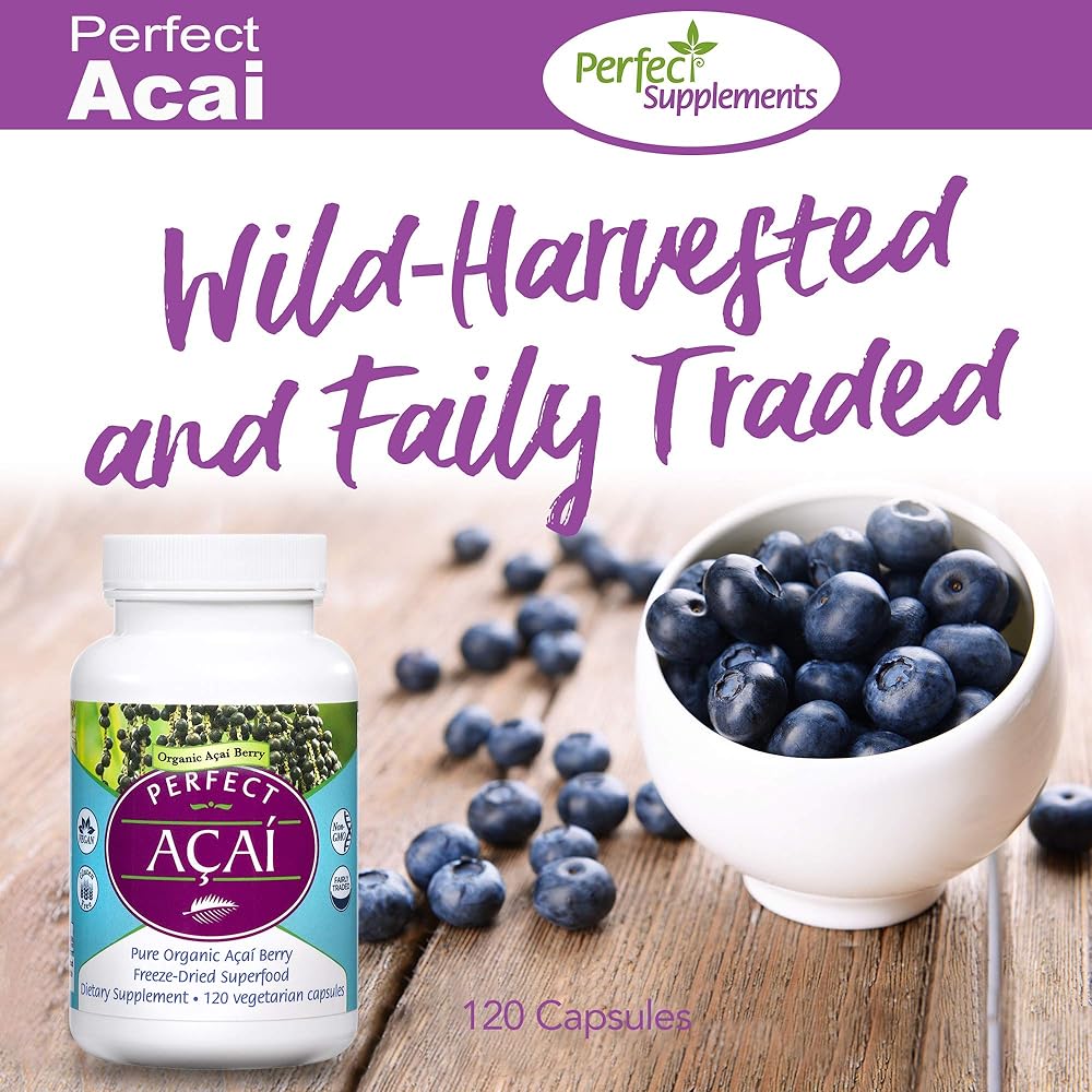 المكملات الغذائية المثالية - أكاي المثالي المزروع عضويًا - مكمل أكاي المجفف بالتجميد - 120 كبسولة نباتية